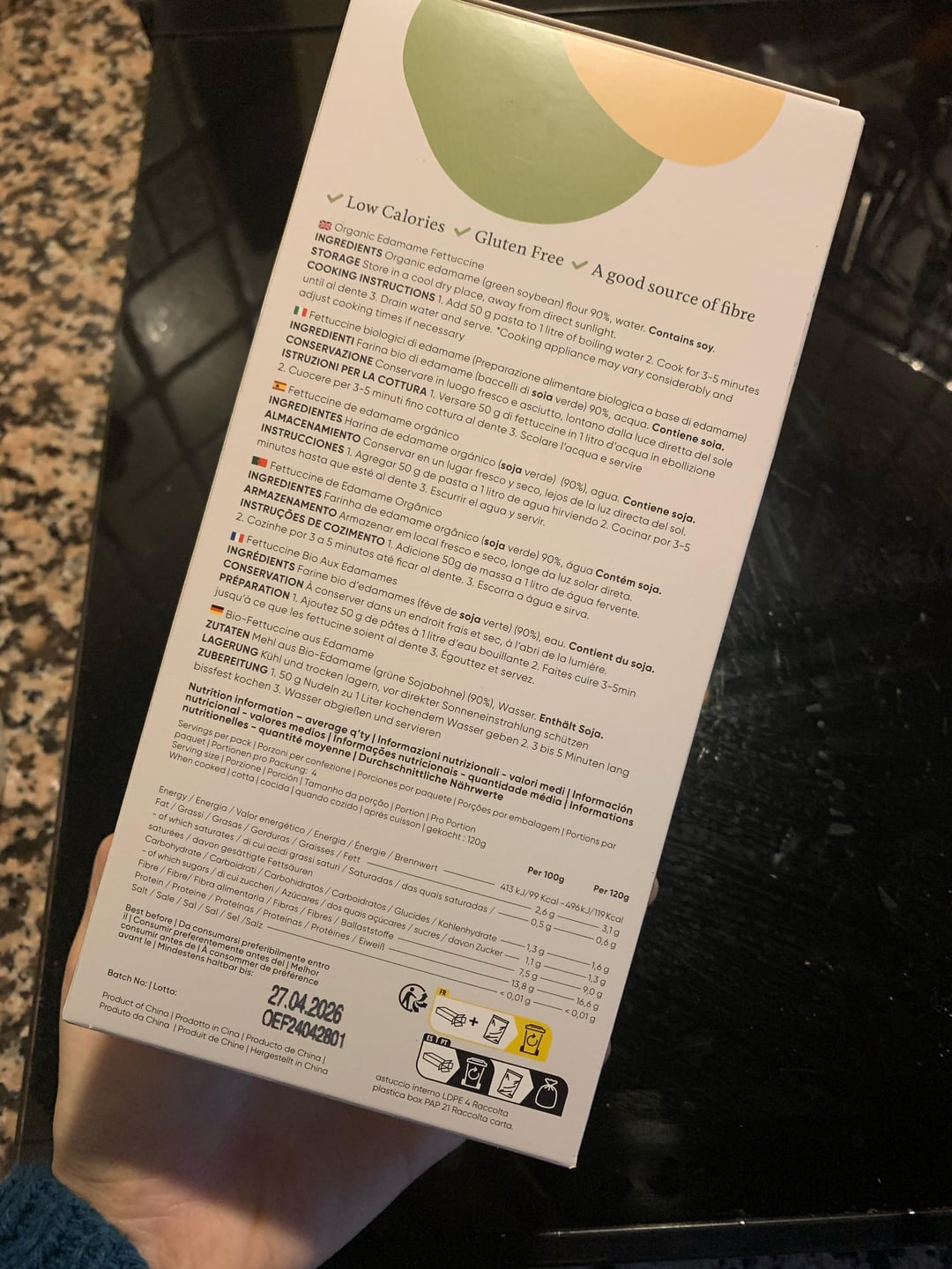 Yeah, 120g cooked is 119 cals and there’s 4 servings of 120g cooked per pack meaning 200g dry divided by 4 servings is 50g dry per serving of 119 calories or 2.38 calories per gram:)