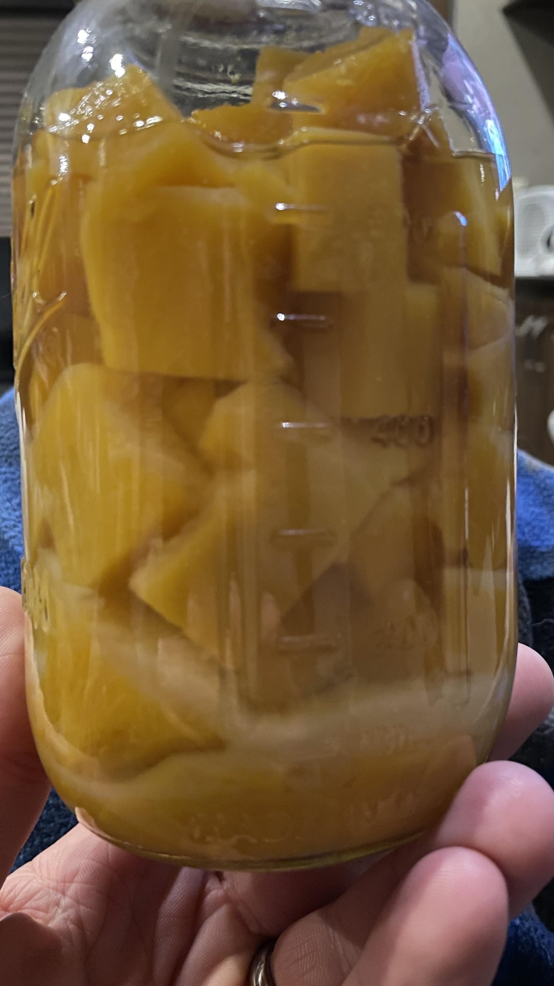 First time canning butternut. Pressure canned 90 minutes+ at 10psi. Been settling for about a month.Not sure what the white stuff is – safe? The liquid is clear, the white mostly on the tops of the solids like it settled out. by Dbthegreat1 Write A CommentYou must be logged in to post a comment.