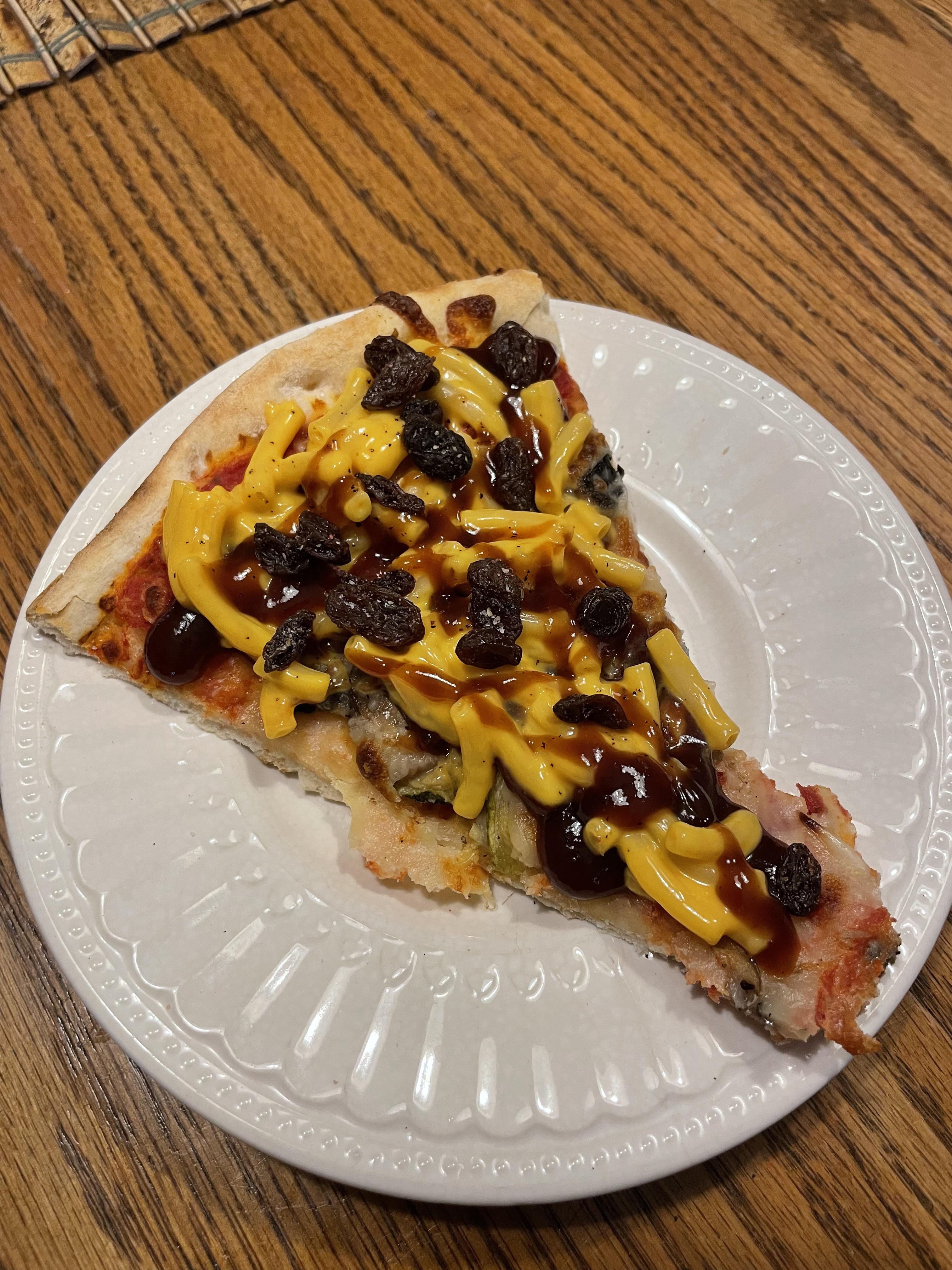 This is disgusting but I’m also curious as to if raisins are workable into a pizza or if it’s a lost cause as a topping. Further investigation is needed