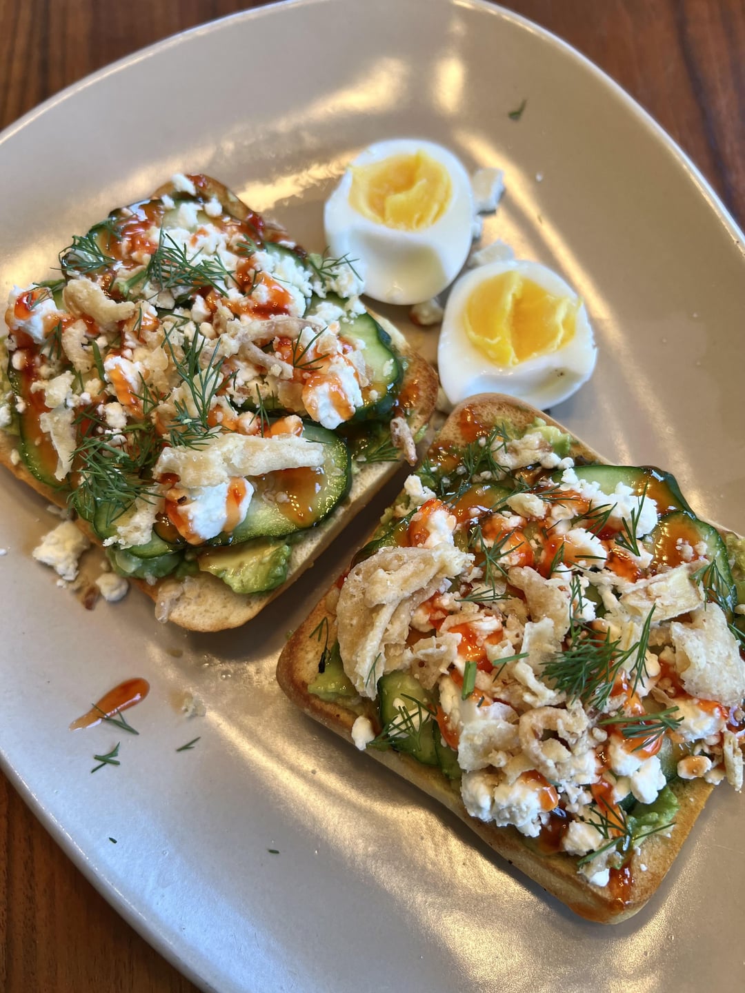 Sweet & Spicy Avocado Toast with Feta – great combination of flavors but I’m not a huge fan of the packet guacamole. (Egg not included)