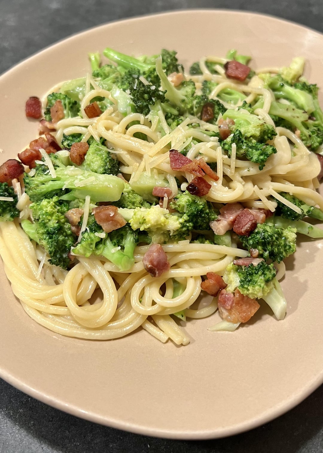 Bacon & Creme Supreme Spaghetti – very good but a little too rich for me. Added extra broccoli and some lemon juice.