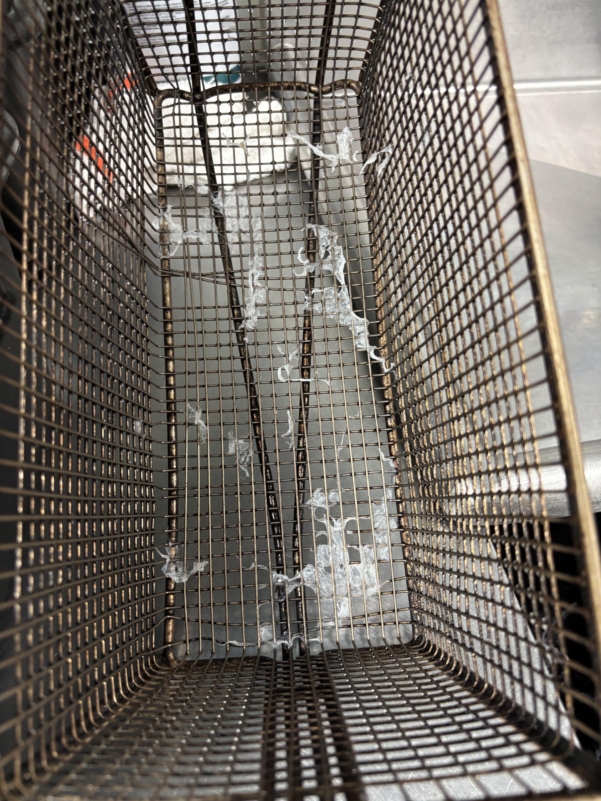 In this situation since the oil is already toss wouldn’t it be quickest to just melt the rest of it off the basket in that oil?