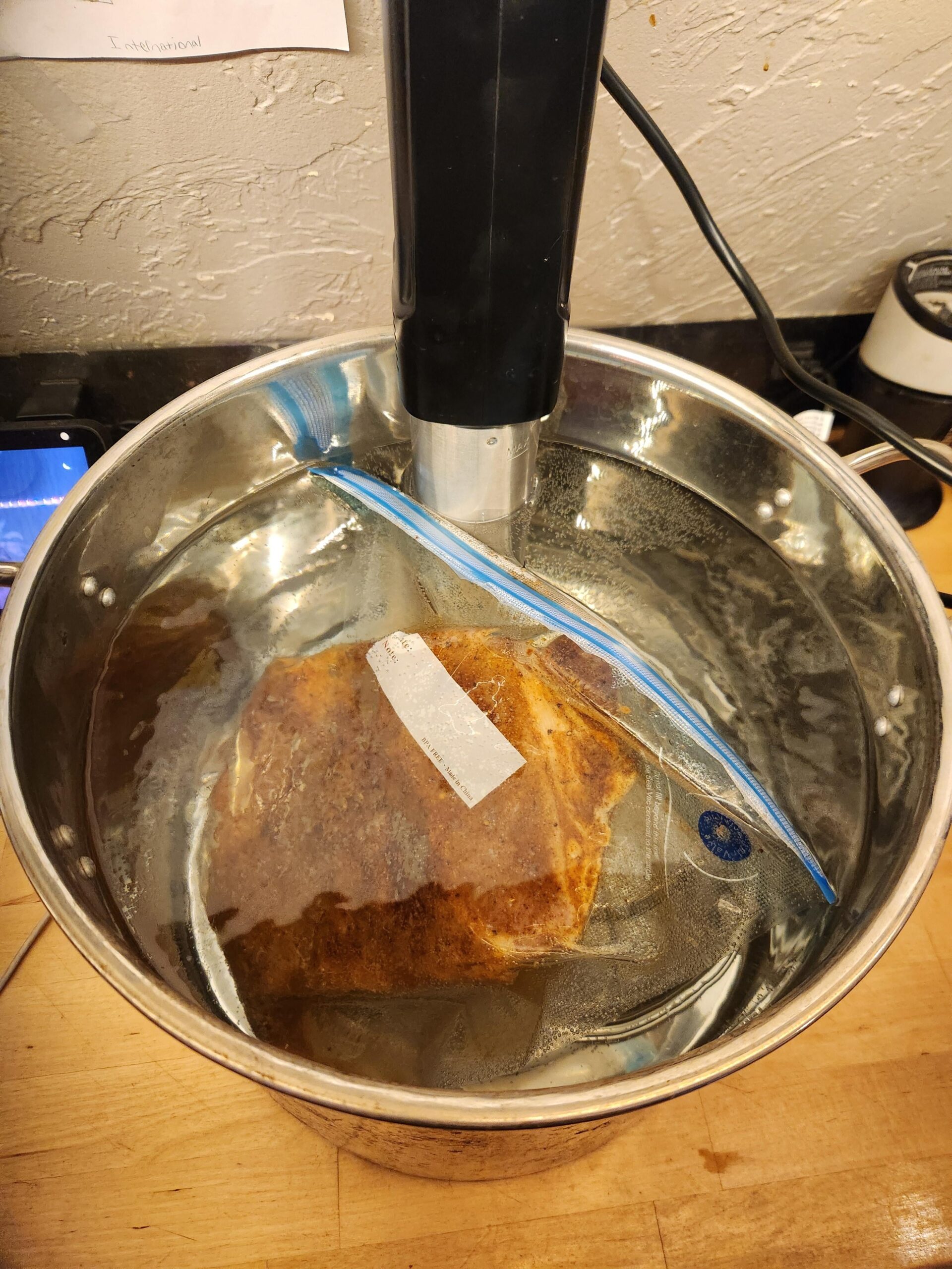 I just did 2 chucks and 2 racks of short ribs in a waterbath at the same time – chuck at 155 for 36 hours then chilled before going on the smoker for 3 hours to internal temp of around 150 – ribs for 48 hours at 155 and in the fridge to chill until I want to smoke them.