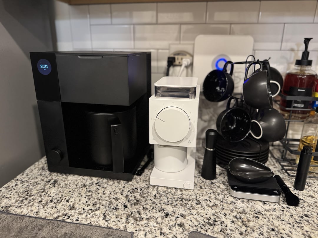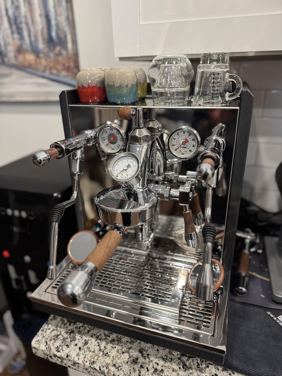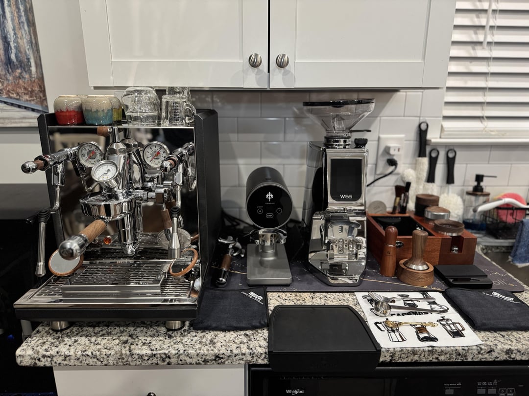 ECM Synchronika-Anthocite with Walnut Accents and Flow Control, Eureka Atom W65 Grinder, Eureka Disko Automatic Tamper, Acaia Lunar Scale, Fellow Aiden Precision Coffee Brewer, Fellow Ode Brew Grinder, Maestri House Scale.by cfbayssr Write A CommentYou must be logged in to post a comment.