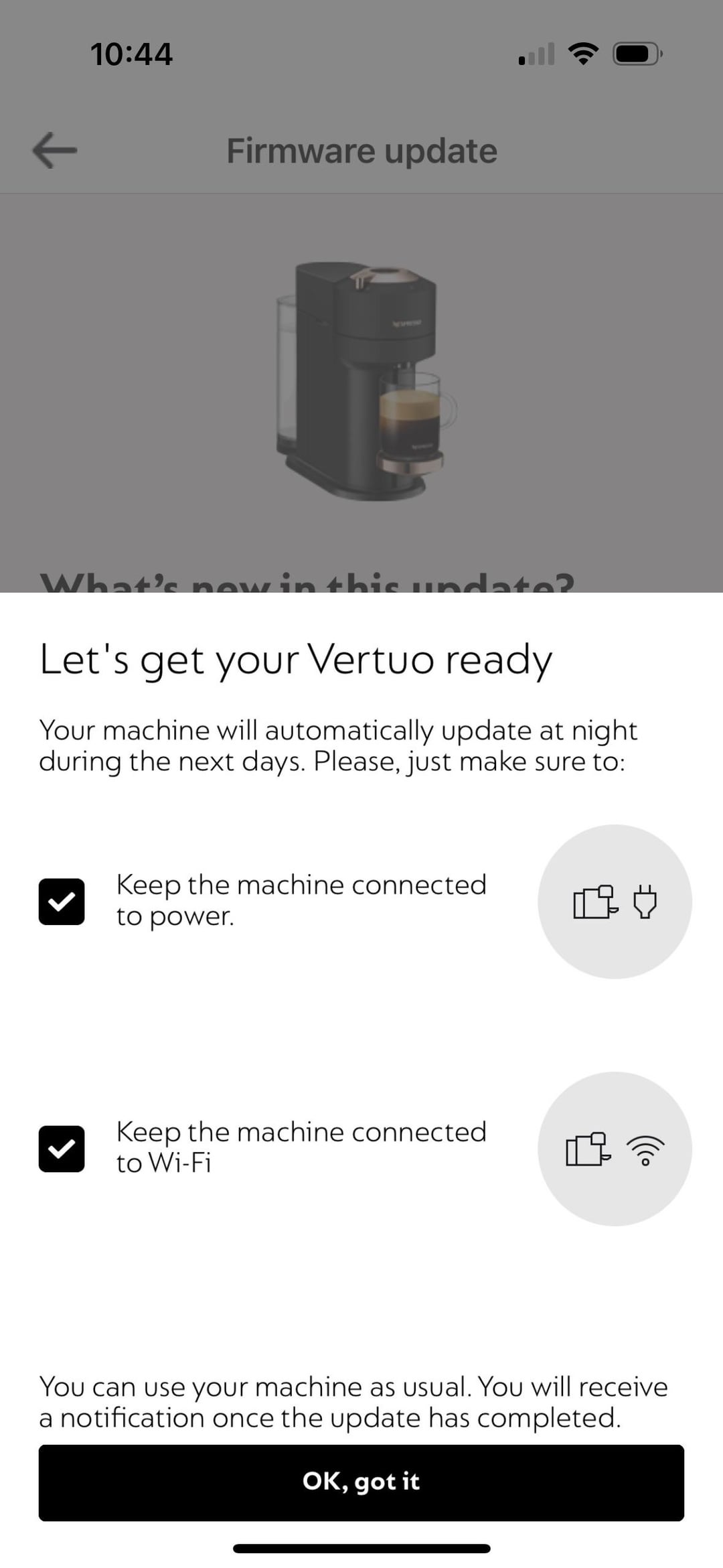Does anyone else have the issue where their machine just won’t update? I still don’t have the concentrated brew feature because I can’t get it to update. I go through both of these screens and it says it’s good to go, but just never updates. I have tried numerous times since the update first came out.