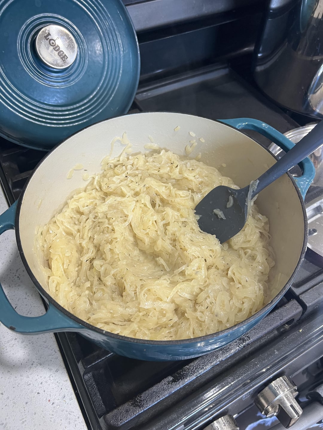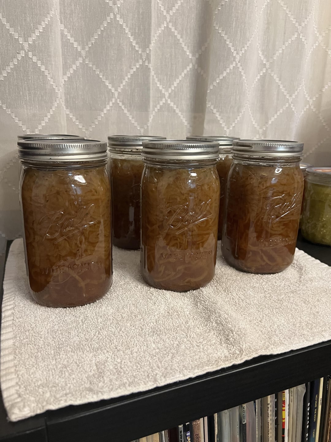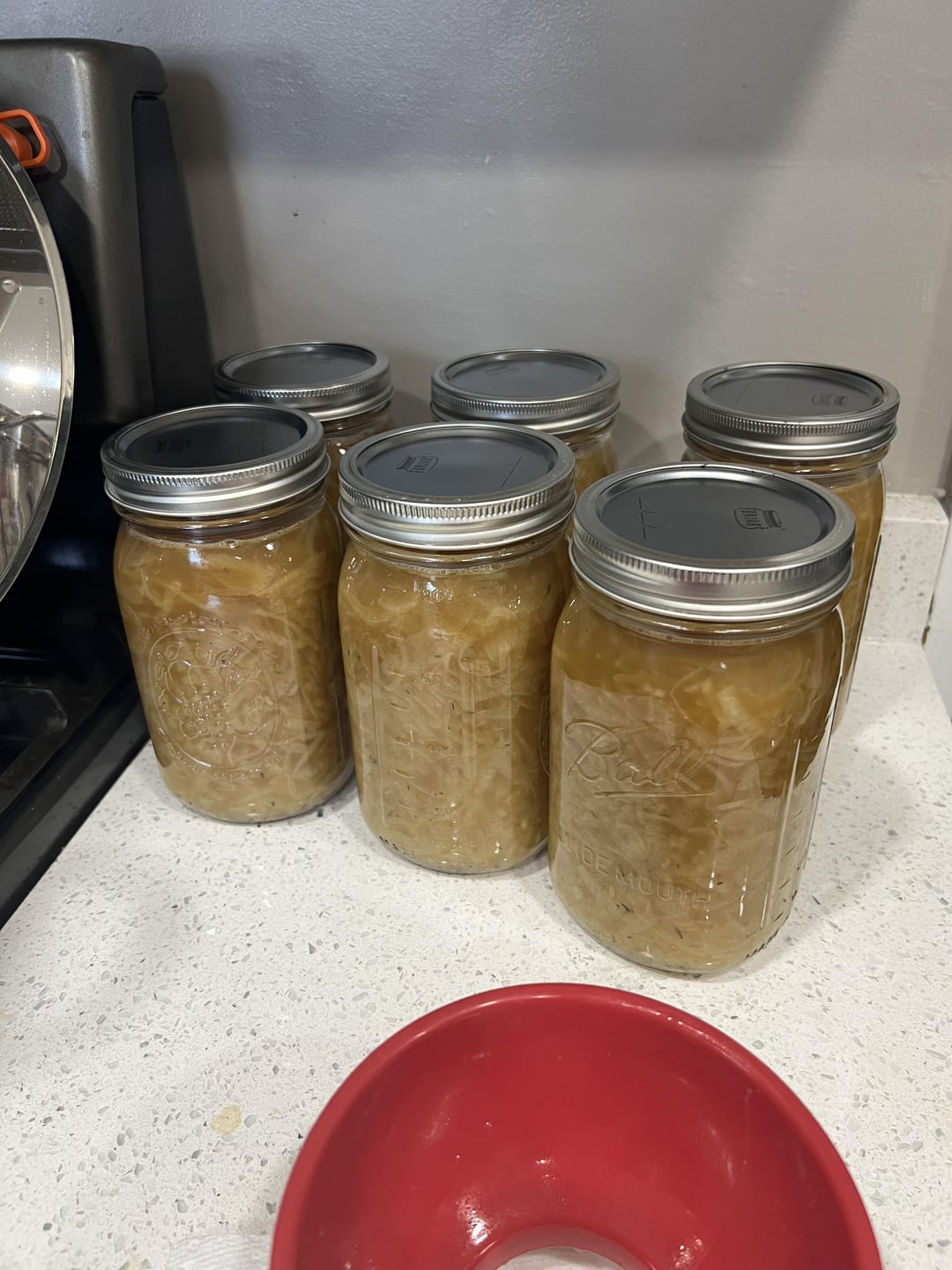 Ended up doing 1.5x recipe as I had 6lbs onions. They didn’t truly caramelize (such a little amount of butter!) but they did get soft and the wine tasted delish in there. This was my longest process yet at 1 hour and 20 mins. Hope it’s good whenever I crack one open!