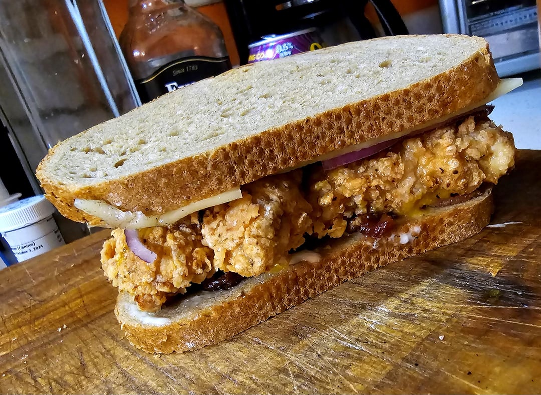 Had a sinus infection for a week, thought something spicy would help 🤣 so I made a quick habanero honey mustard chicken sandwich 😂