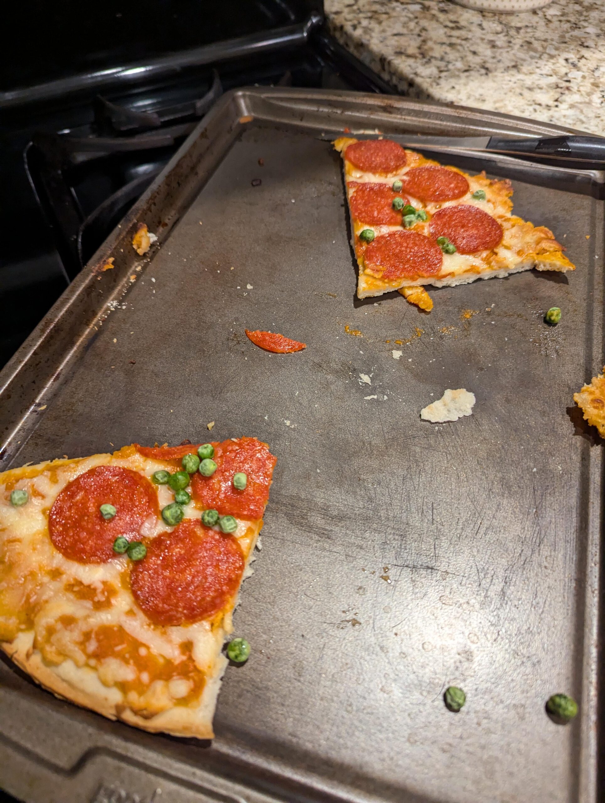 Personal-Equipment44 12 months ago Well, at least you could “flick” those peas off pretty easily. . . I don’t know if they would leave any “residue” on the pie, though. . .