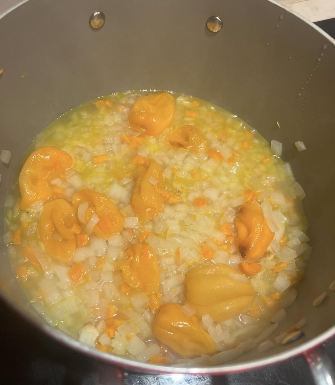 • 10 habanero peppers, seeded, halved • 6 cloves garlic, smashed • 2 tbsp olive oil, divided • 1 cup carrot, chopped • 1 onion, chopped • 1 ½ tsp salt • 2 cups water • ¼ cup white vinegar • ¼ cup lime juice