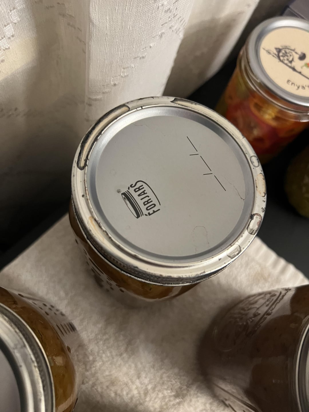 Anyone know why my lids/rings have this residue on them? Not all of them have it. They were perfectly clean going in. I just pulled them out a couple minutes ago when I noticed. I added vinegar to my canner but I do that every time