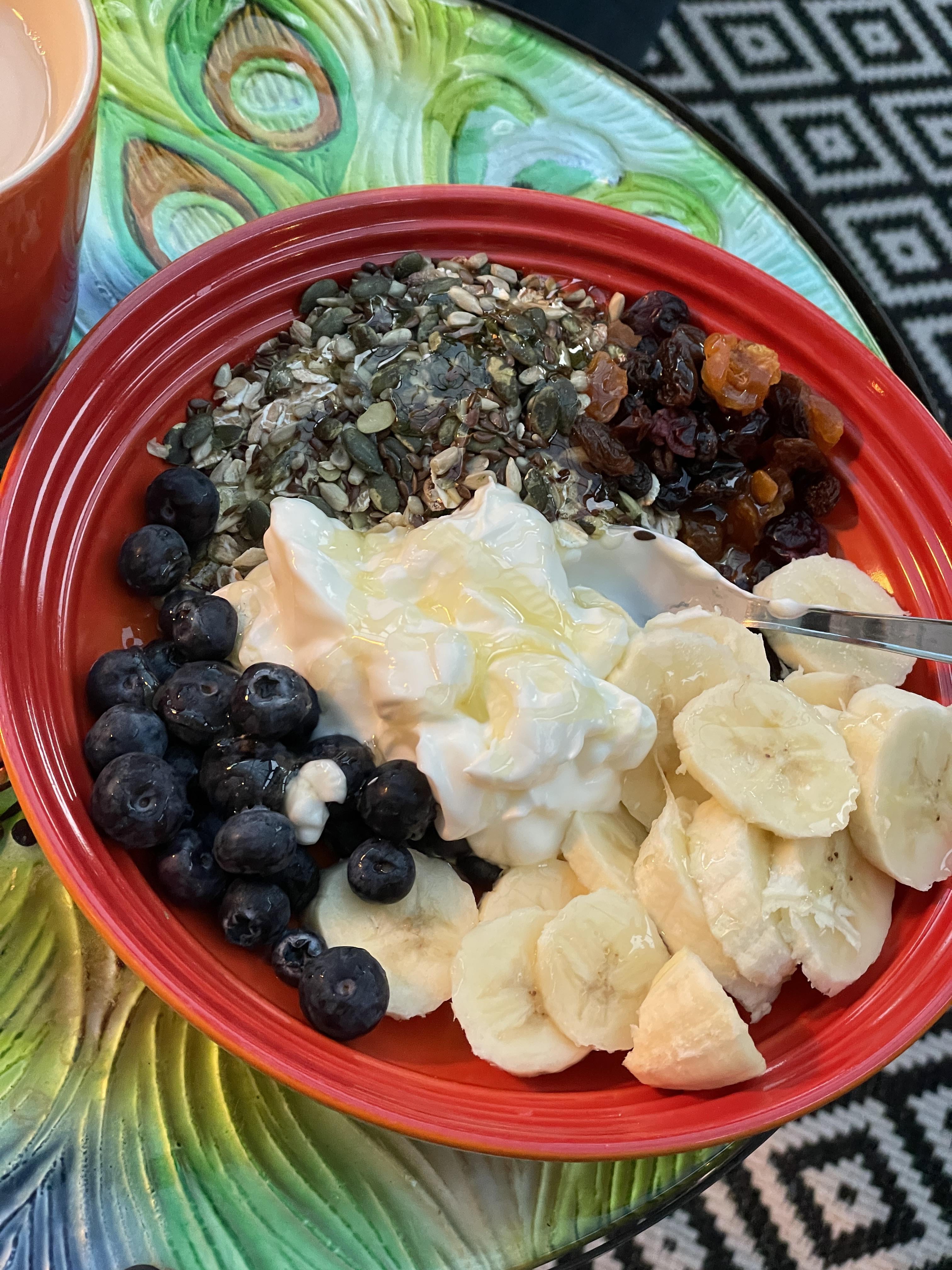 [Homemade] Muesli, mixed seeds, mixed dried fruit, banana, blueberries, yogurt and local honey. With a cuppa.by The-IT_MD Write A CommentYou must be logged in to post a comment.