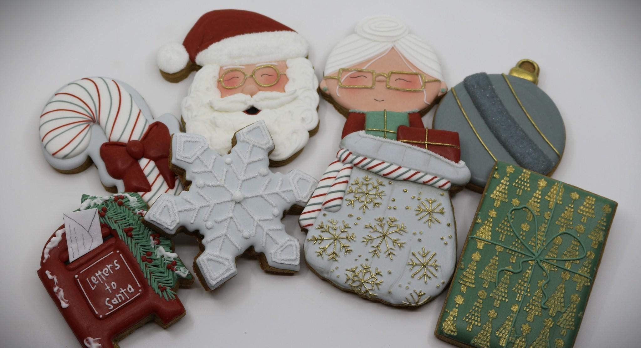Santa caught my eye right away. His mirth and, his rosy cheeks. Then the fine details on other cookies.