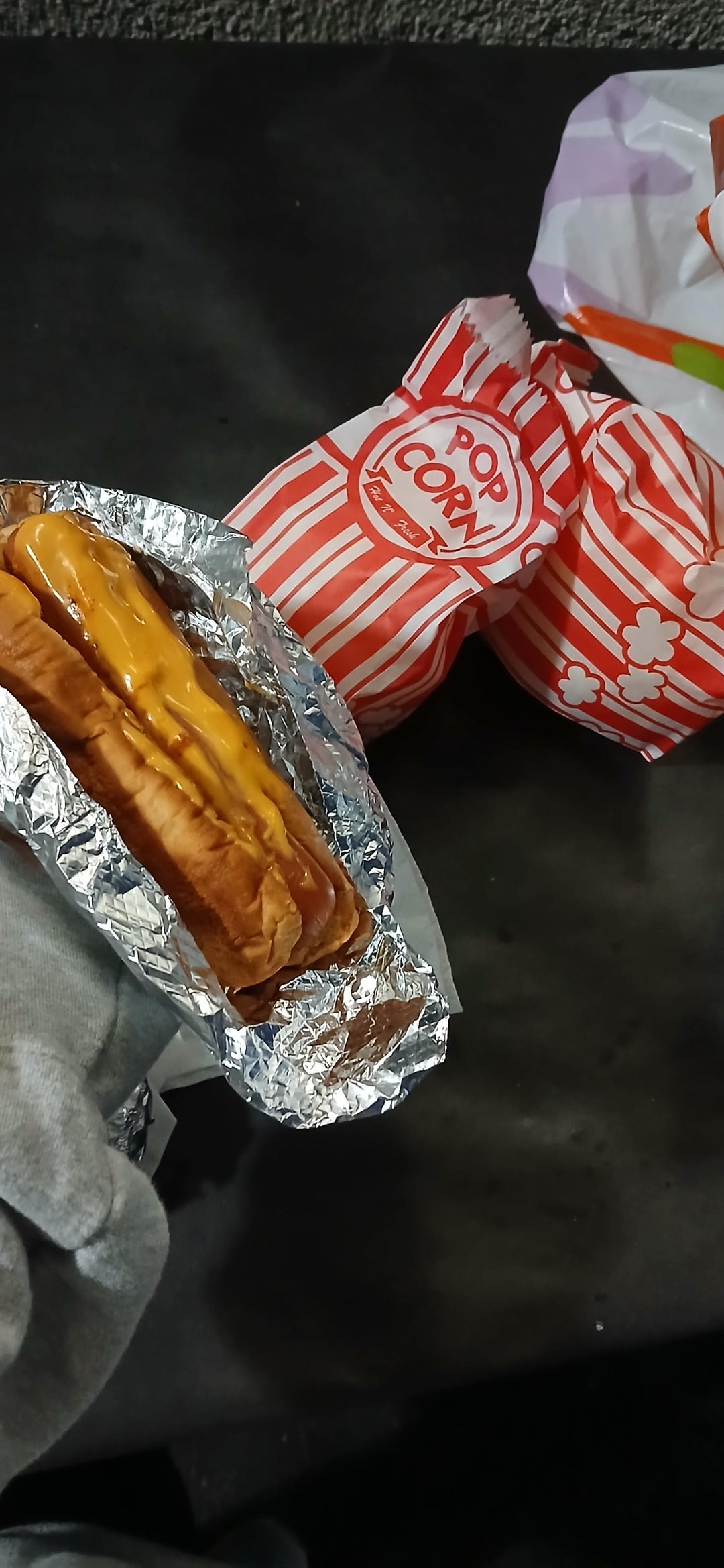 For the hotdog, I only ate half the bun, also there's relish and cheese on it! Each popcorn bag felt like it weighed 30 grams, and the eggs are 135 grams for all! My mom said she made it with egg and cabbage (maybe some oil)?
