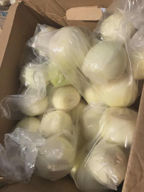 The foodbank I volunteer at was giving away boxes of onions… I restrained myself only took one bag