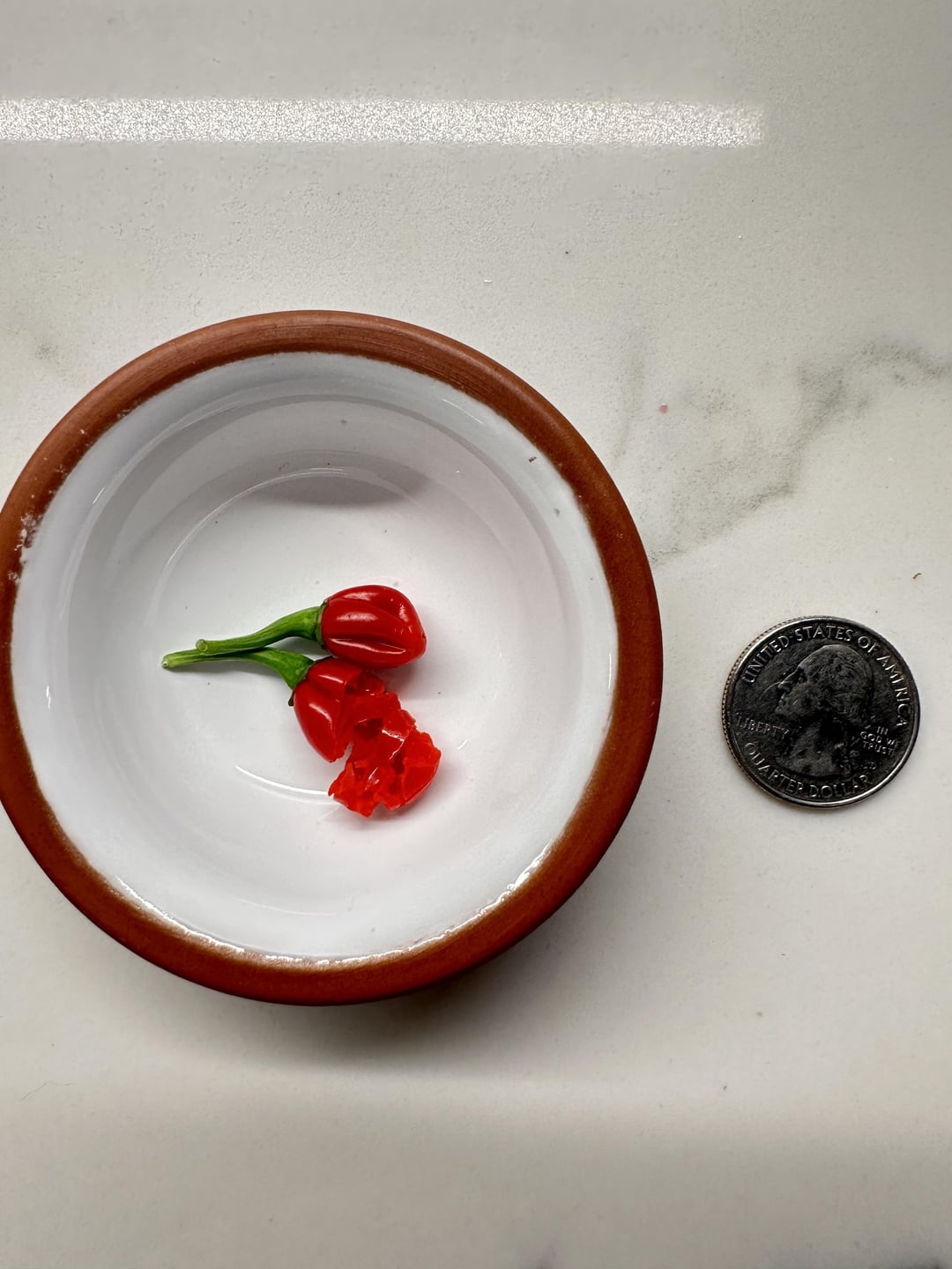 I bit into one tiny red baby and I won’t describe the face I made. Quite spicy – more than jalapeño, Serrano, maybe even Thai chili.