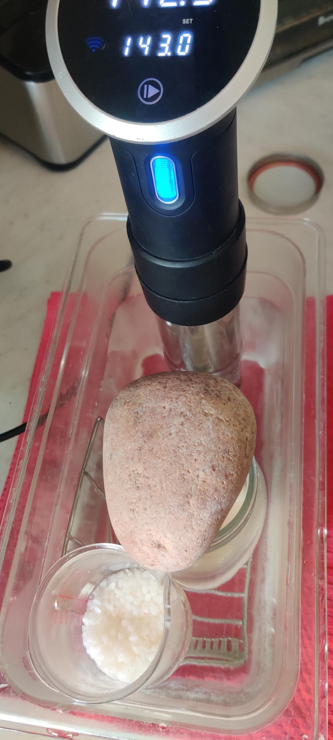 Idk why people are downvoting this. Idk why I never thought to heat wax in a sous vide. That stuff is annoying af to heat normally 💀 and I bet with some jiggering you could make a nice large batch for candle dipping if you covered the spaces so you didn’t get wax in the bath