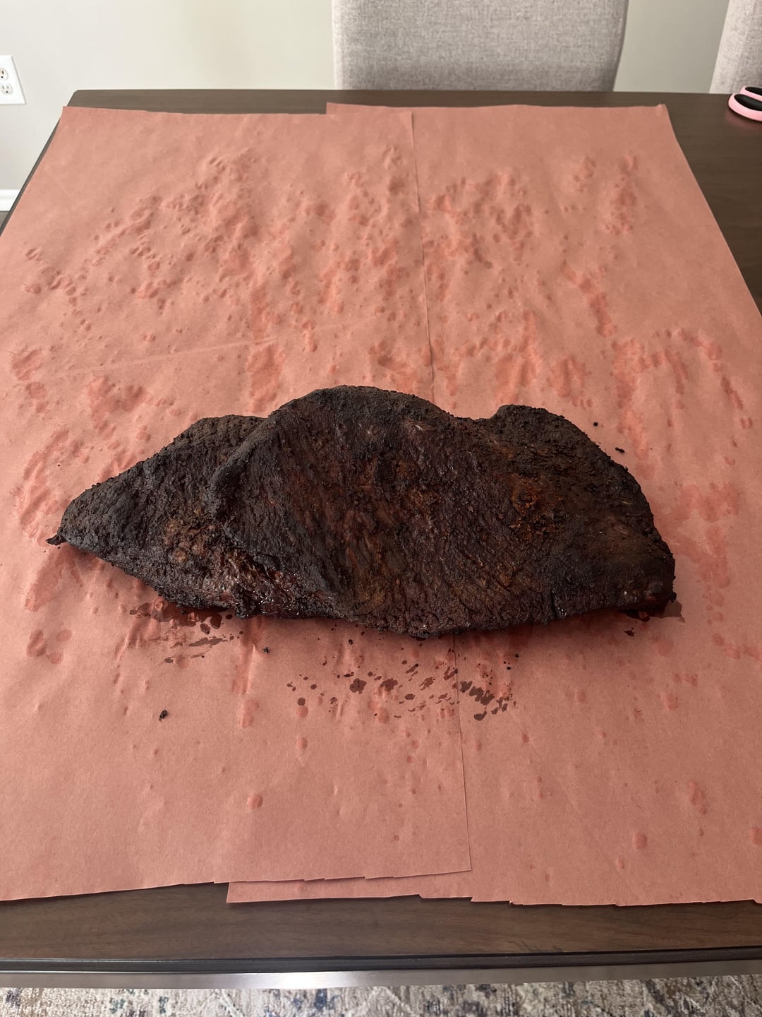 First opened the grill at 8am, then 11 when it was at 160 but still didn’t have the bark I wanted. Left it until 1 and wrapped in butcher paper at 168.