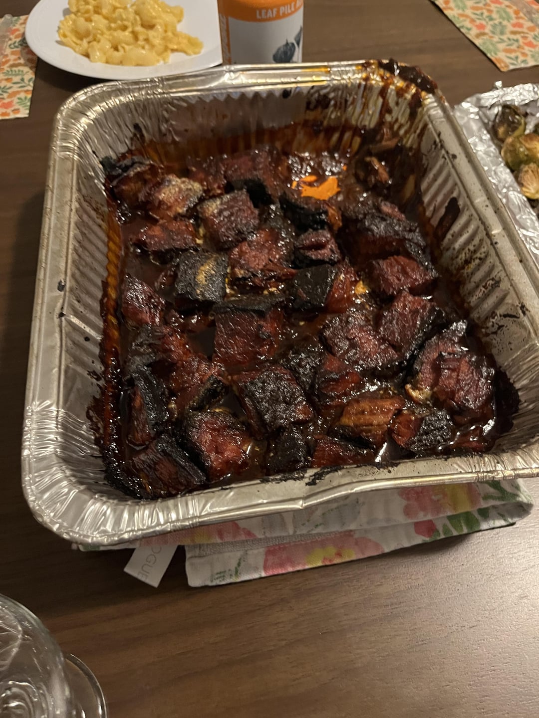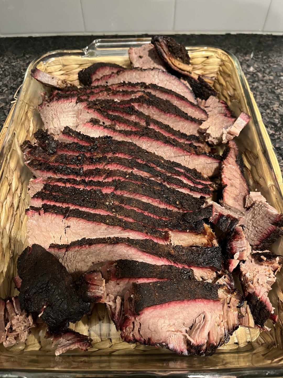 Overall, thought it turned out ok for the first one. The flat was definitely a bit dry and overcooked as it fell apart some during the bend test. The point and burnt ends were delicious. Didn’t have any meat left at the end though feeding 9 so can’t complain too much.
