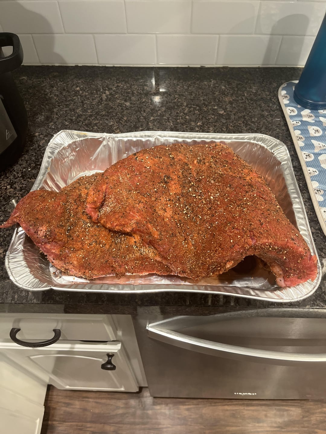 Picked up an 11.5 lb prime brisket (fully trimmed) from a butcher for a birthday celebration Friday night.