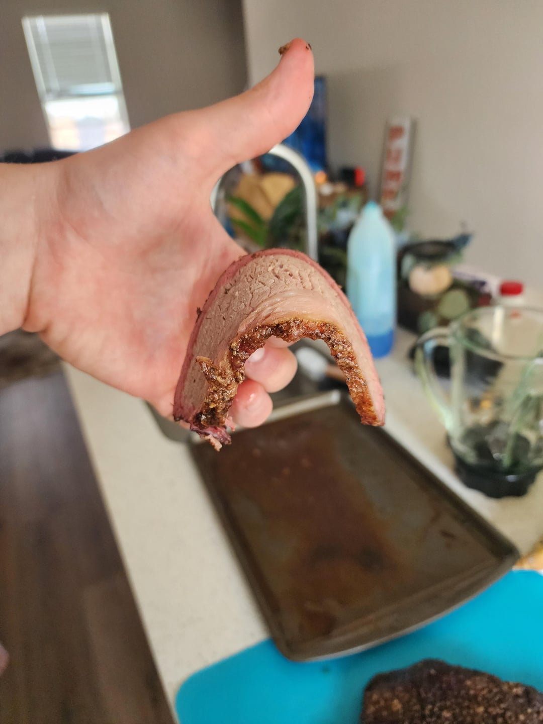 Did 200* over night, 9pm to 4am. wrapped at 170ish with no tallow or anything (didn't have any :/), pulled at 204ish. Let it sit in my oven at 145 for ~4hr still wrapped.