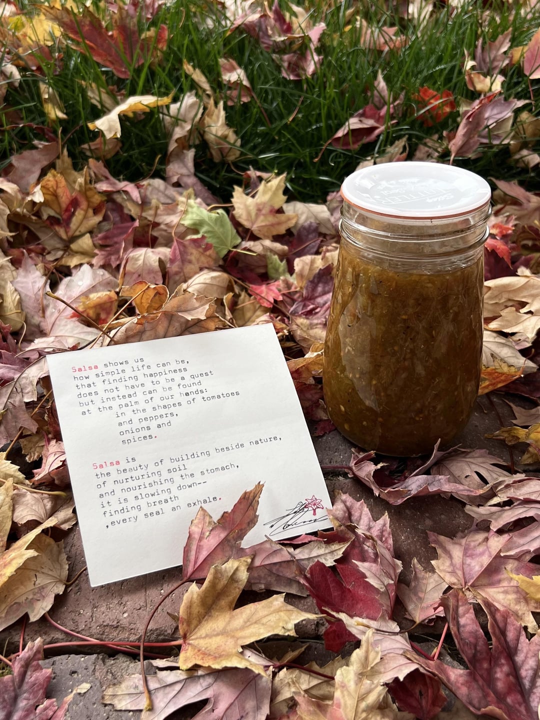 Today at the farmer’s market, I asked the woman creating poems to write one about my home-canned salsa!