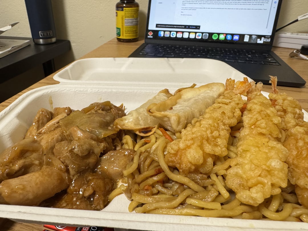 it has 3 firecracker shrimps, 2 chicken dumplings, chicken teriyaki, and vegetable lo mein by 2wopleasant 1 Comment OldVeterinarian7668 1 year ago 1100Write A CommentYou must be logged in to post a comment.