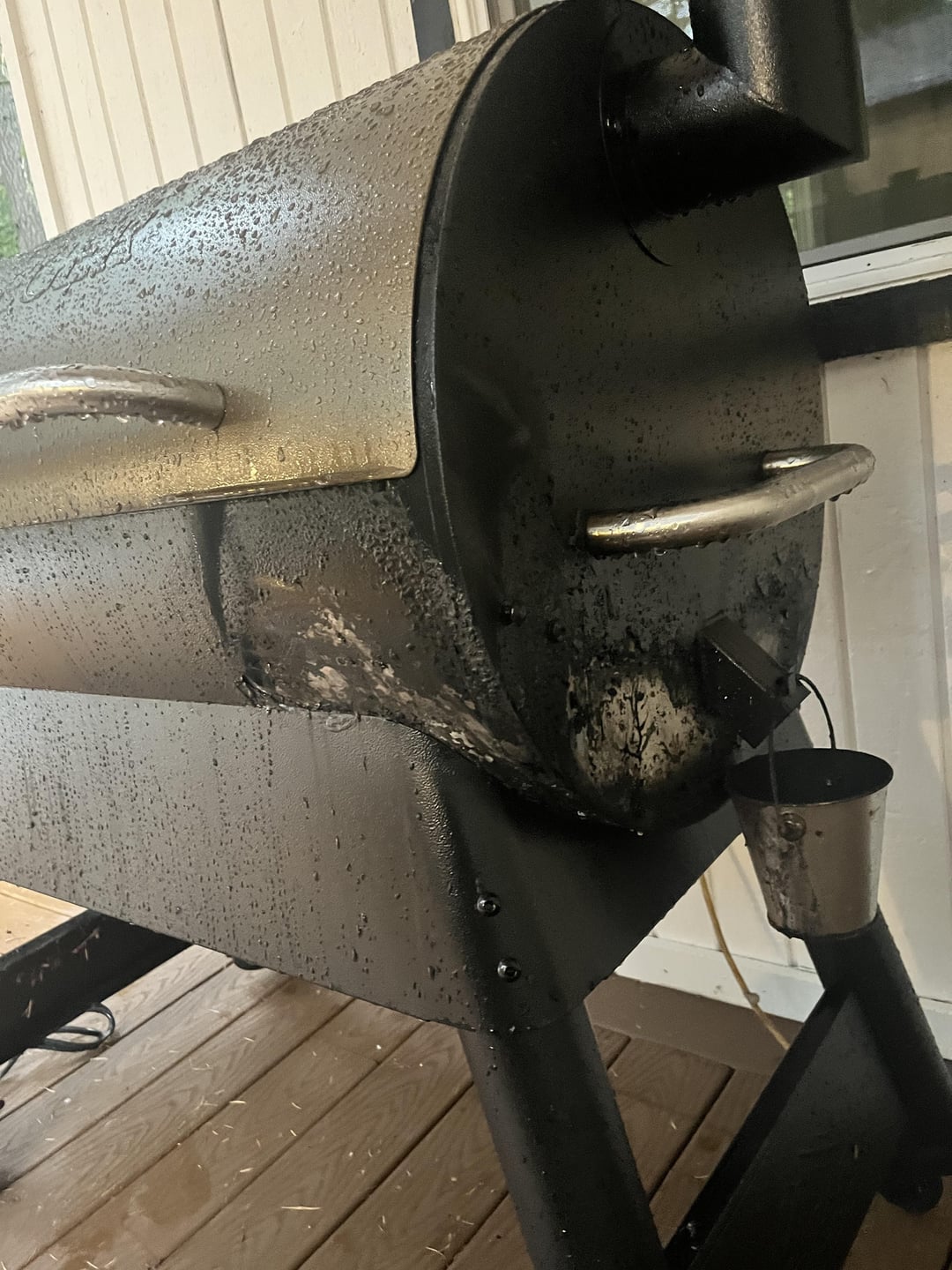 Home Depot in May of this year. I normally cook low & slow but this weekend I turned the grill up to 375 to speed up my flank steak(yumm). After turning it off & letting it cool down, I pulled it back under the cover and noticed multiple spots started to peel off. Why is this?