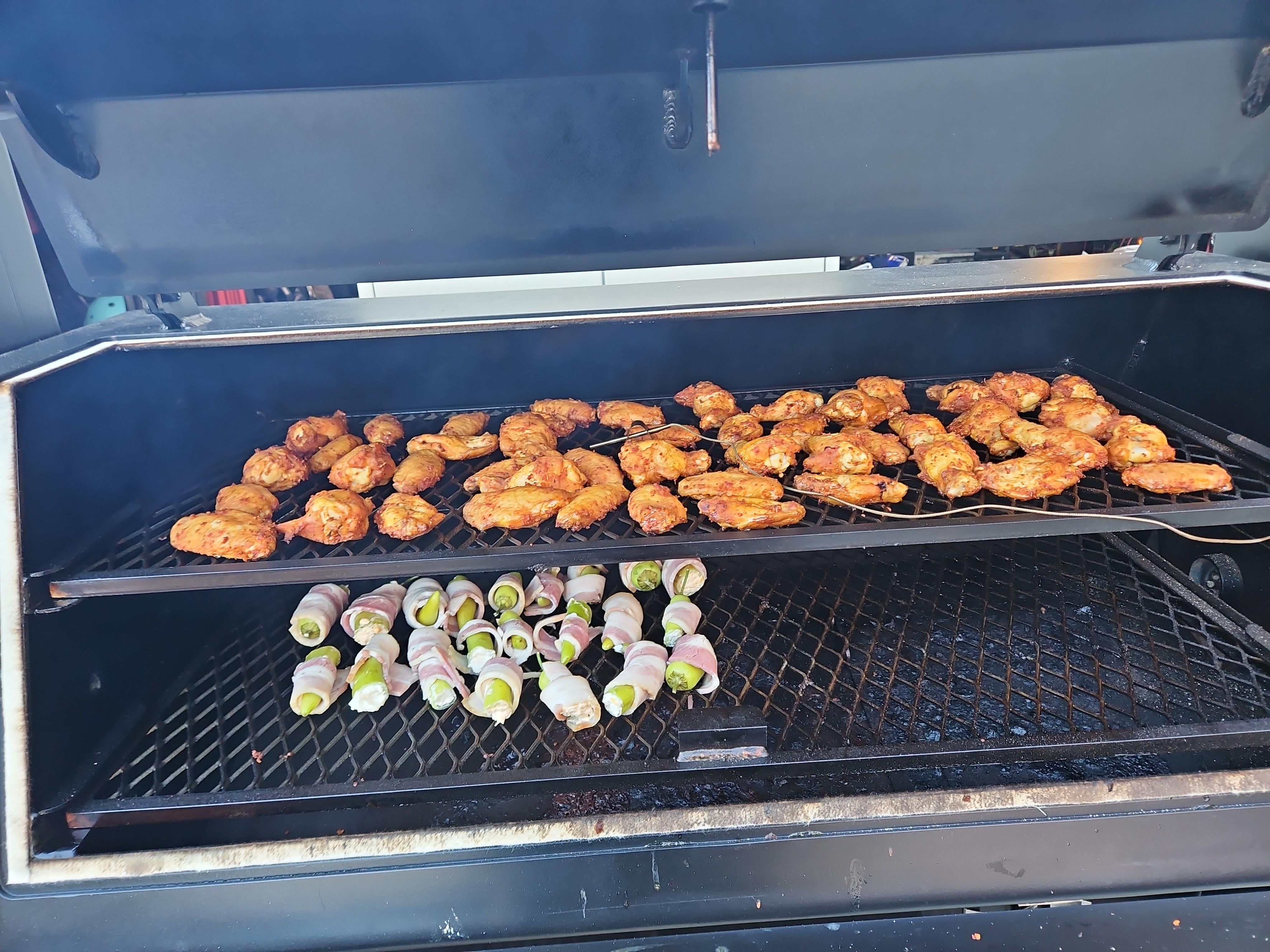 250 for 2hrs with some costco marinated garlic wings. They csme out amazing. Fireboard for the win too the temps are so consistent.by fishead36x Write A CommentYou must be logged in to post a comment.