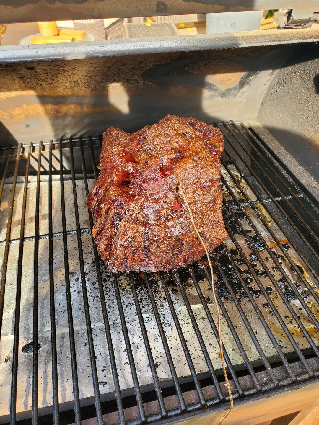 Smoked chuck six and half pounds 225 for 6 hrs Finished it the oven at 250 In a cast iron with beef stock draped in foil