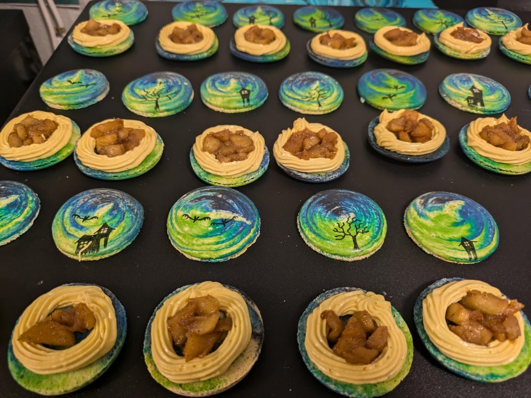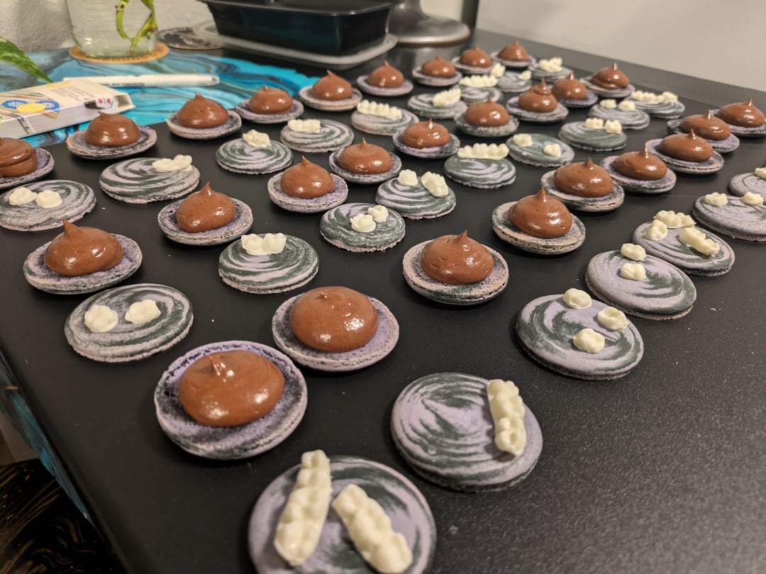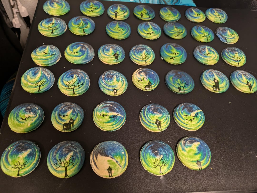 Just finished filling these for a friend’s Halloween party on Friday. The ones with the teeth are dark chocolate bourbon ganache, and the spooky aurora ones are apple chai.