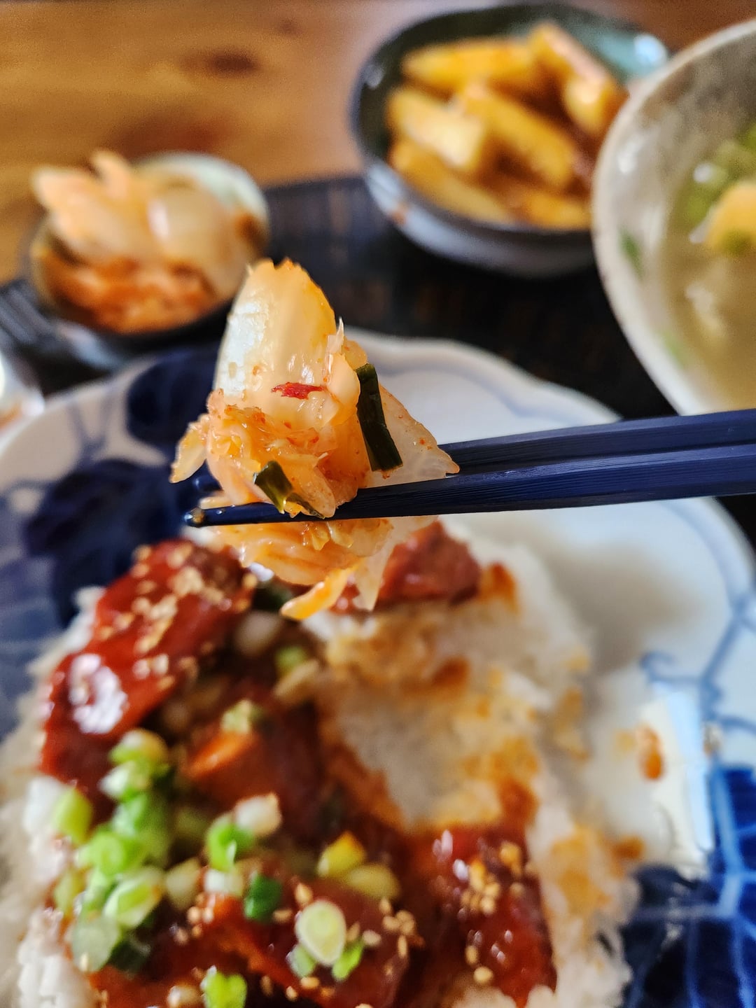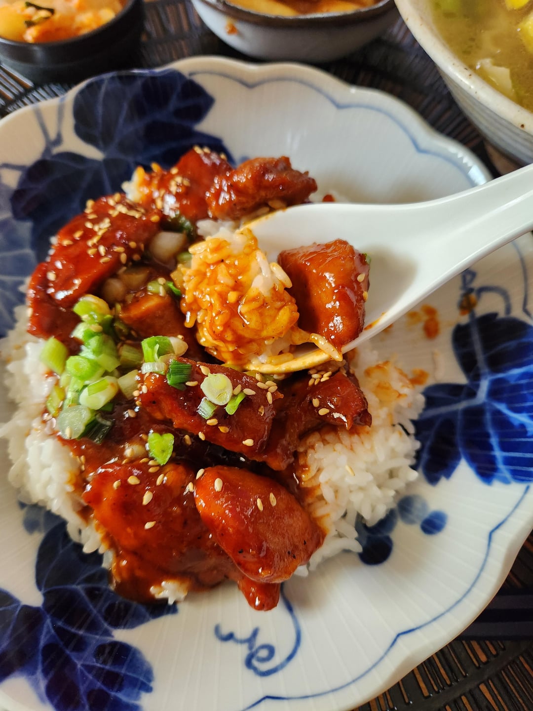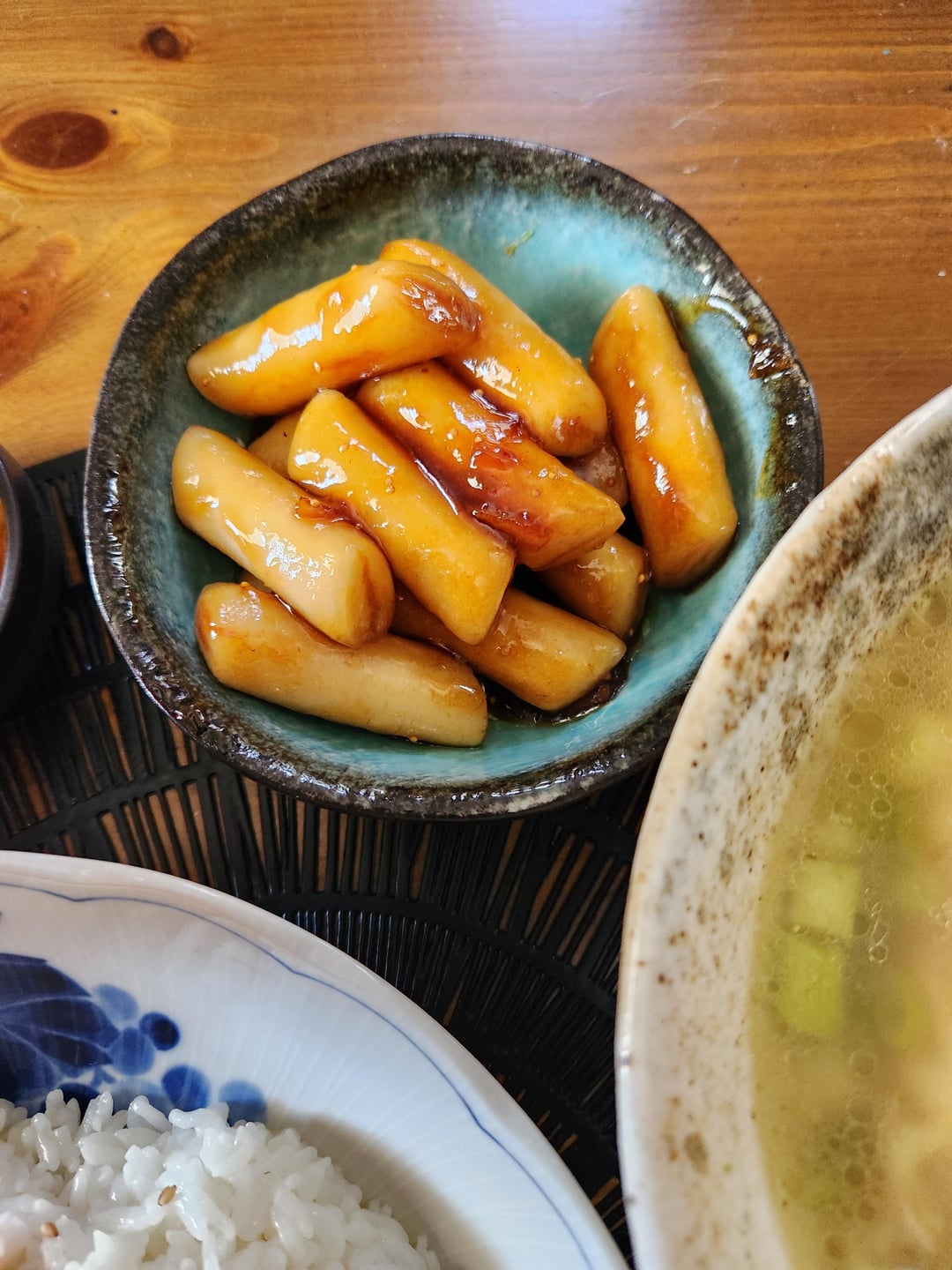 Jeyuk Bokkeum 🌢 Manduguk πŸ₯£ Tteokkbokki in 🍯 with 🍊 and figs and Kimchi πŸ₯¬πŸ§„πŸ§…πŸŒΆπŸ₯•