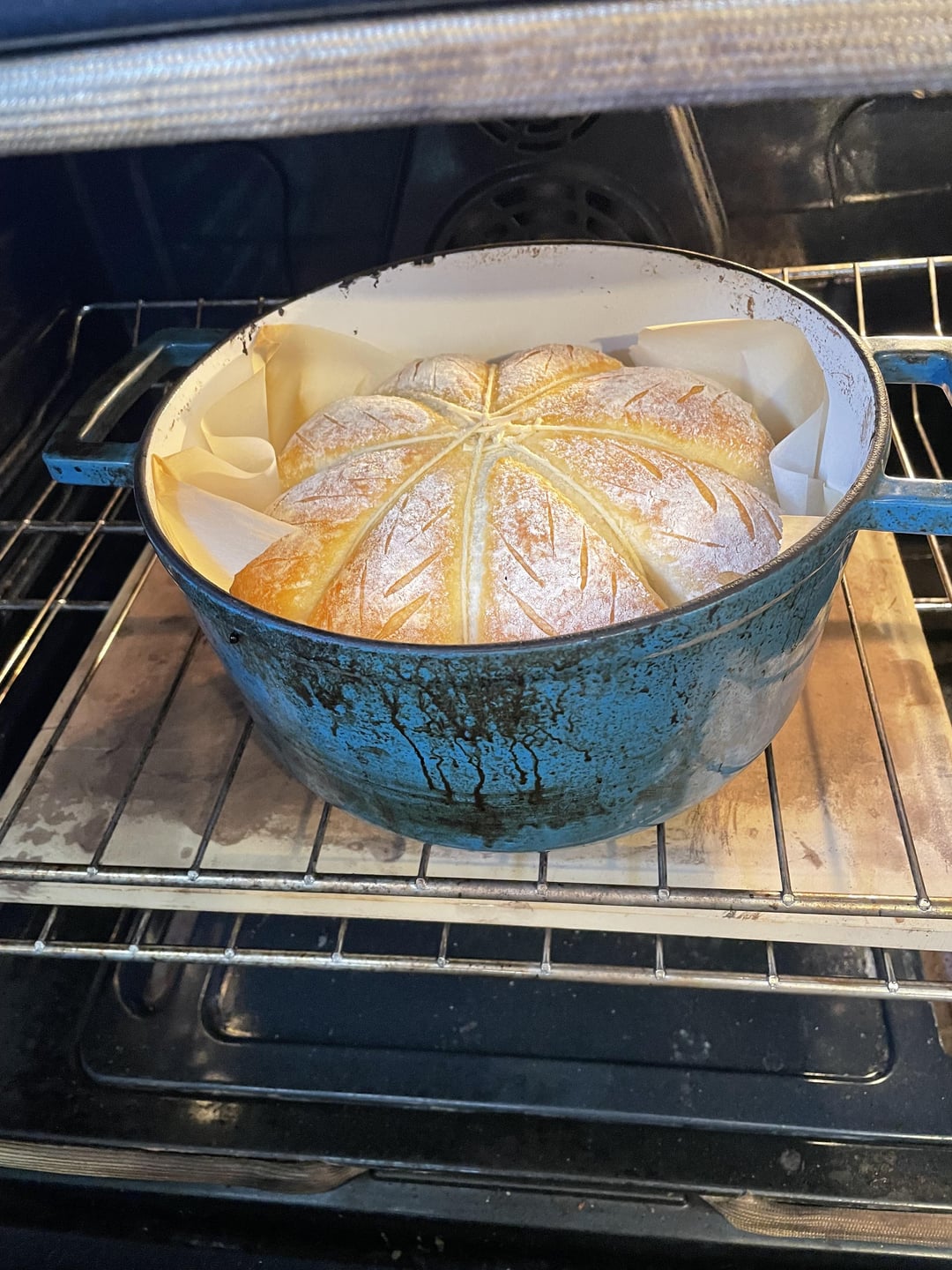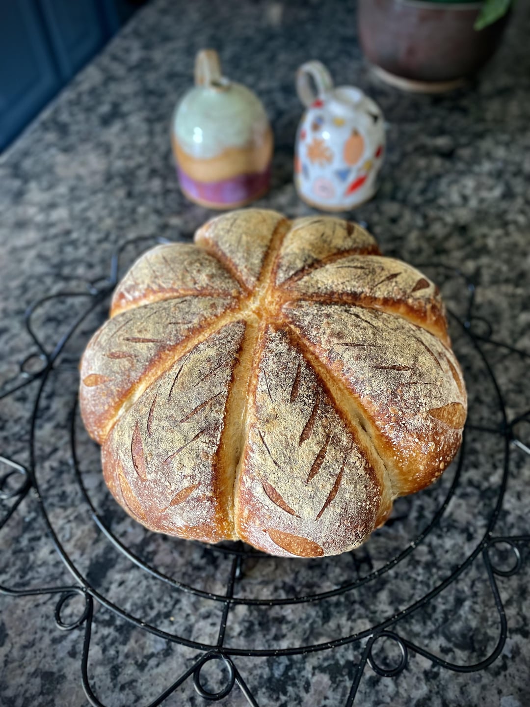 My wife is going to visit her folks tonight. I have some commitments so I’m sending bread for them. White, 76% hydration. The tying worked pretty well for a second shot. My scoring is slowly improving, but is getting there.by PerryCellars 3 Comments subtlefine 1 year ago Oh – cool ZigorVeal 1 year ago Now add a cinnamon stick for the stem! blumpkinsplash 1 year ago Mimi’s parents are lucky people, well done!Write A CommentYou must be logged in to post a comment.