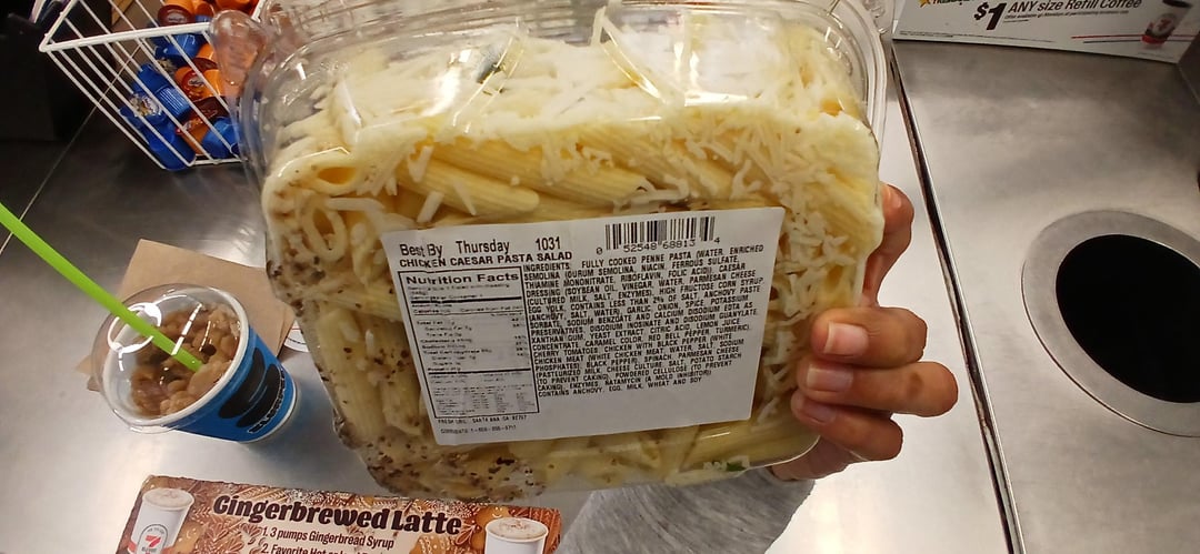Also here is an example of a pasta I found at 7-eleven and it's lighter and has like 700 calories– I don't know if I can believe the school's lunch calories anymore xd