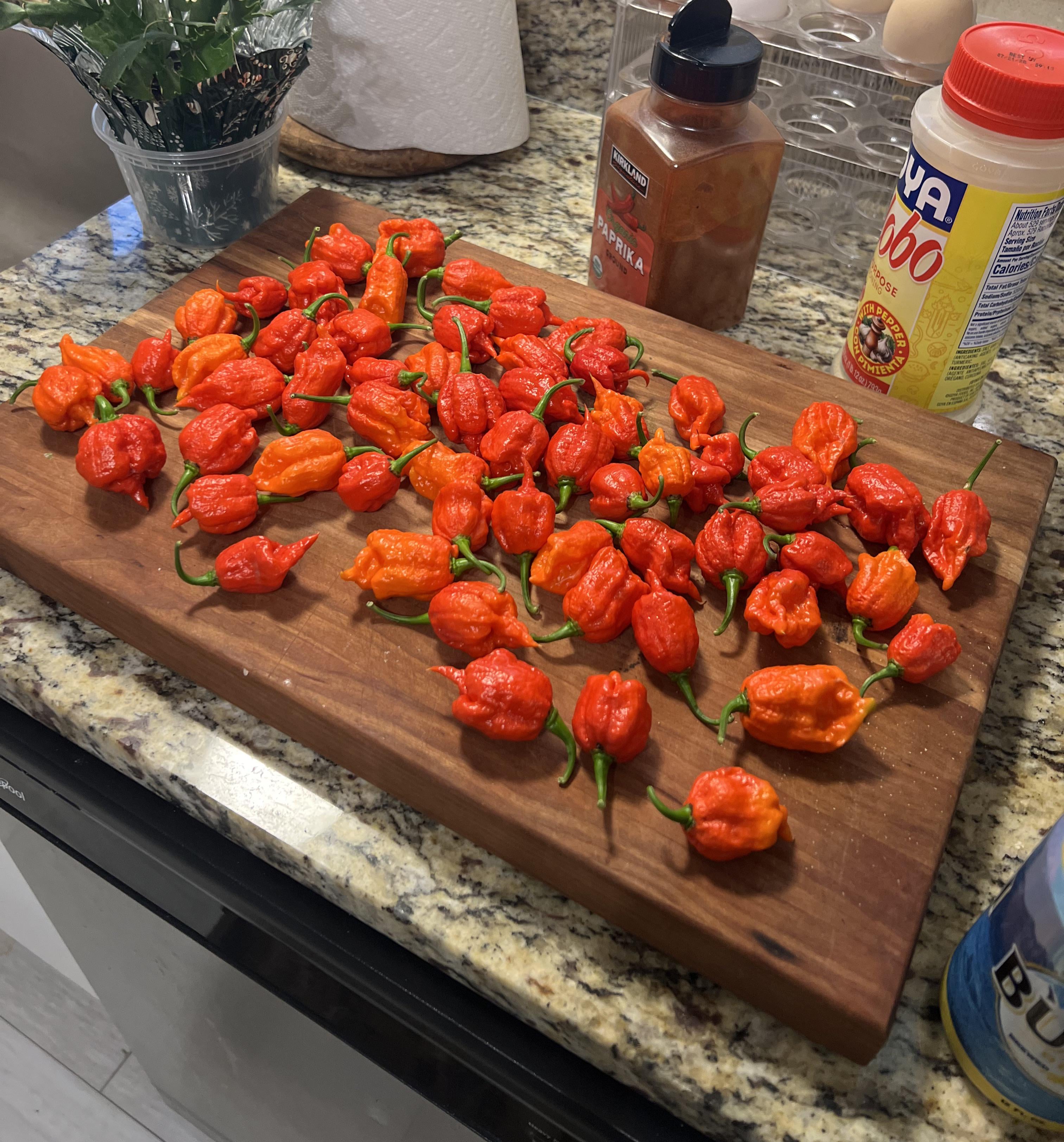 My first harvest of Carolina Reapers by UpbeatAd433 Write A CommentYou must be logged in to post a comment.