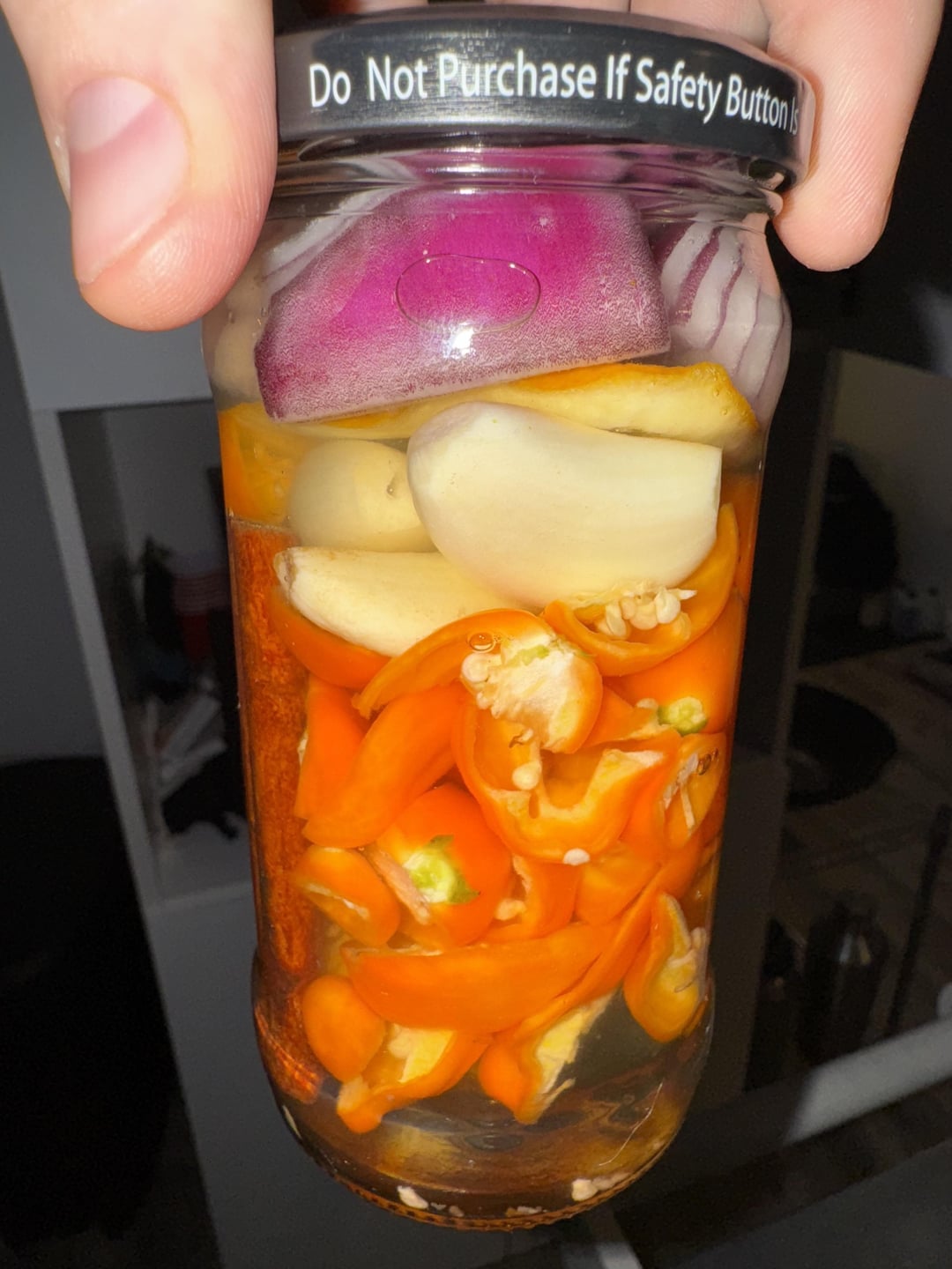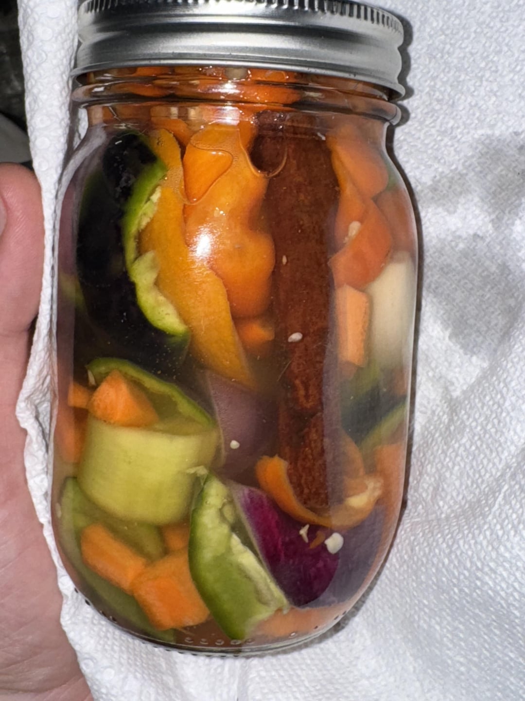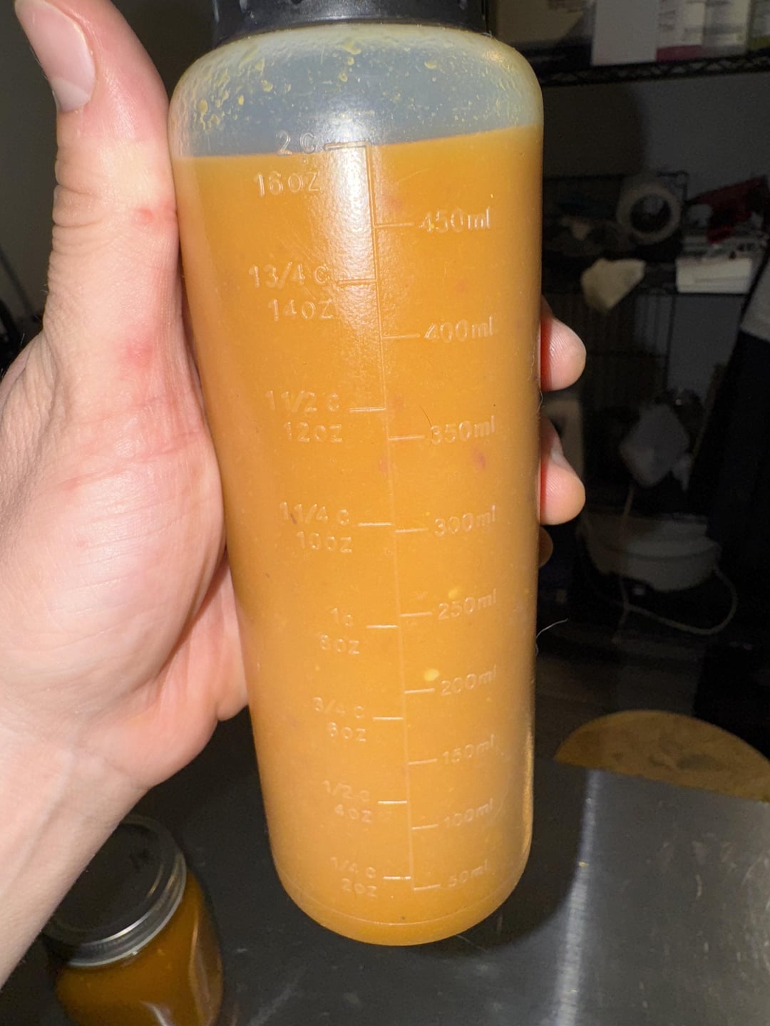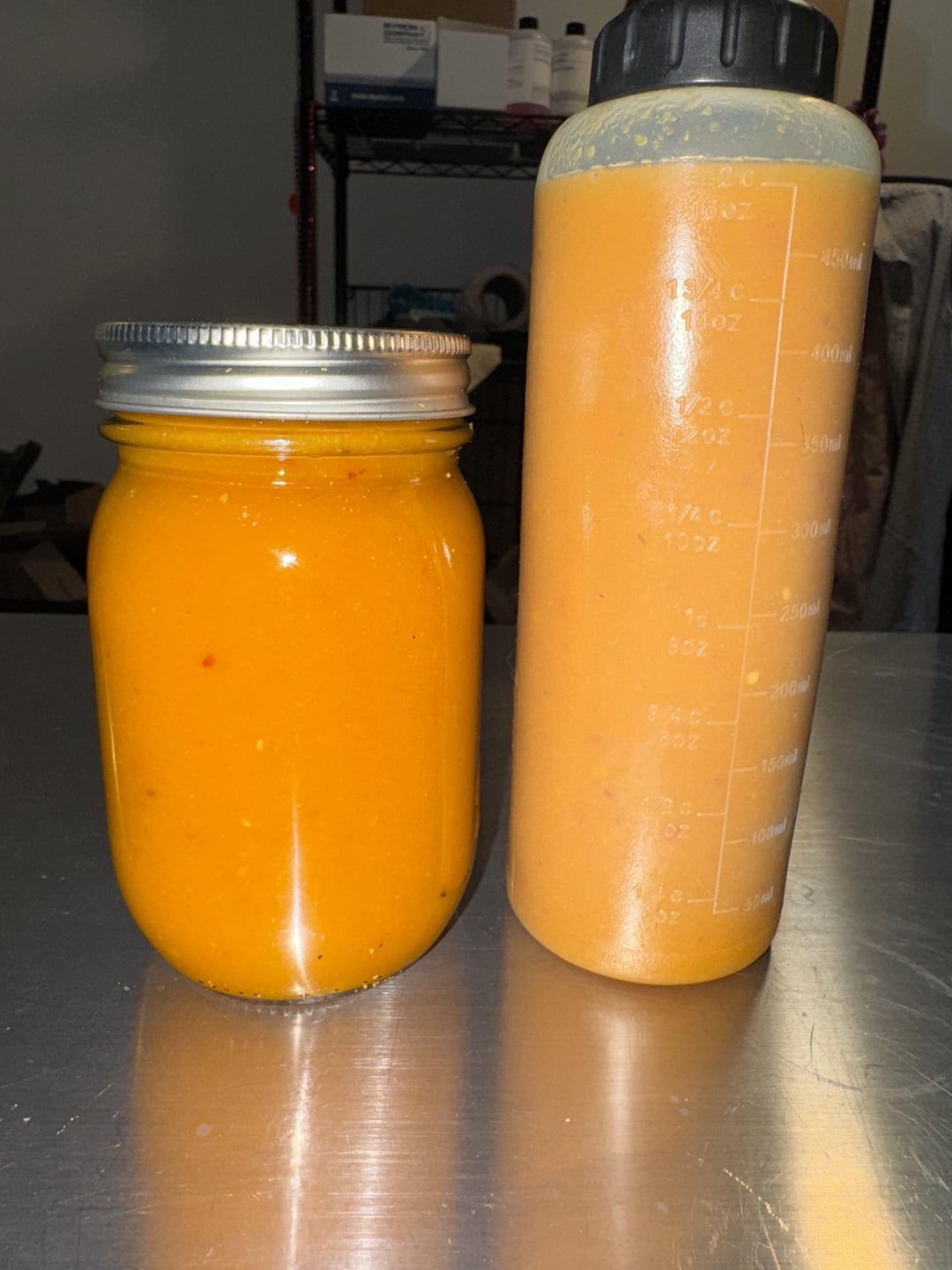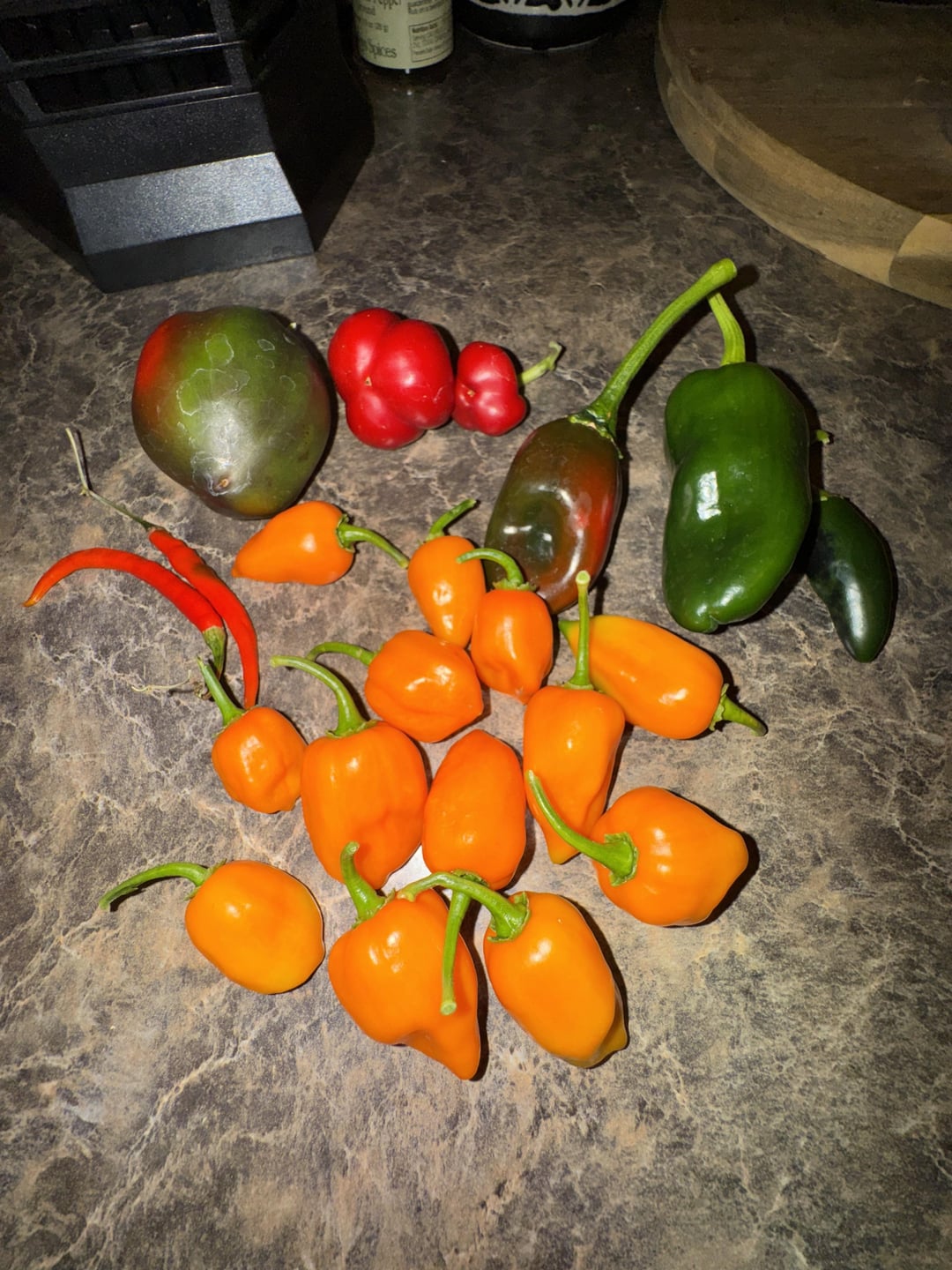 I threw in a few extra bell, Thai, and poblanos from the garden, and fermented ~30 habaneros with shallots, garlic, carrots, cinnamon and orange peel at ~3% brine. After 10 days of fermentation, I sliced up some fresh habaneros, added some cumin and turmeric, and cooked in vinegar before blending with the fermented ingredients.