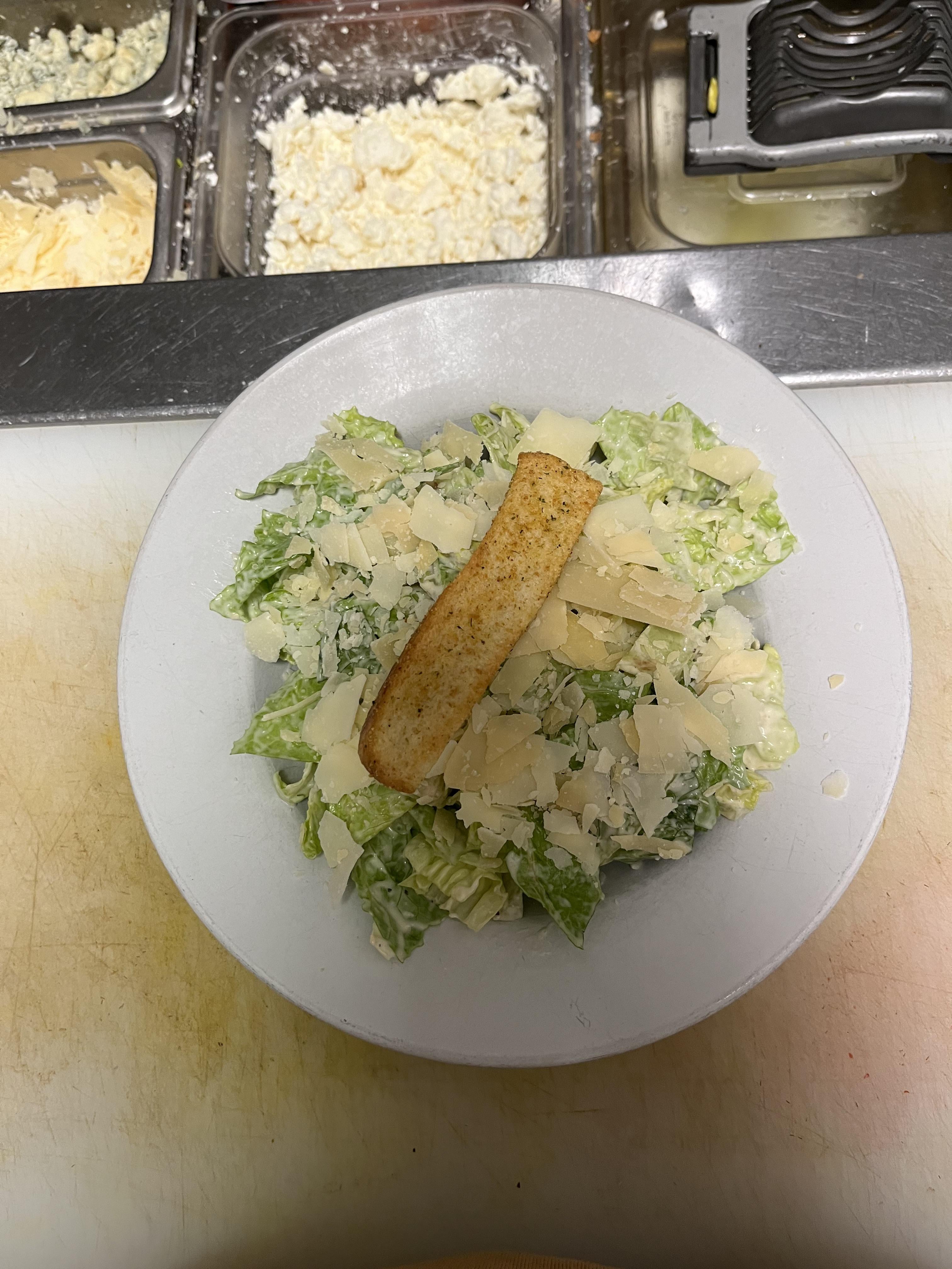 But he let you serve a bundle of shaved parm. That’s not a Caesar, that’s a parm salad with some lettuce