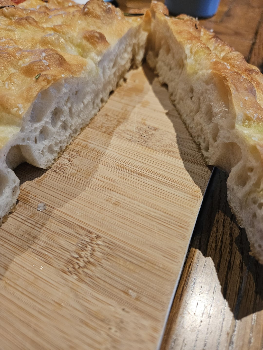 After what I can only describe as a battle with focaccia, and finally realising a crappy fridge was messing up the overnight rise, I have finally (4th attempt) achieved a decent result. I am currently about 90% bread and it was delicious 🙂