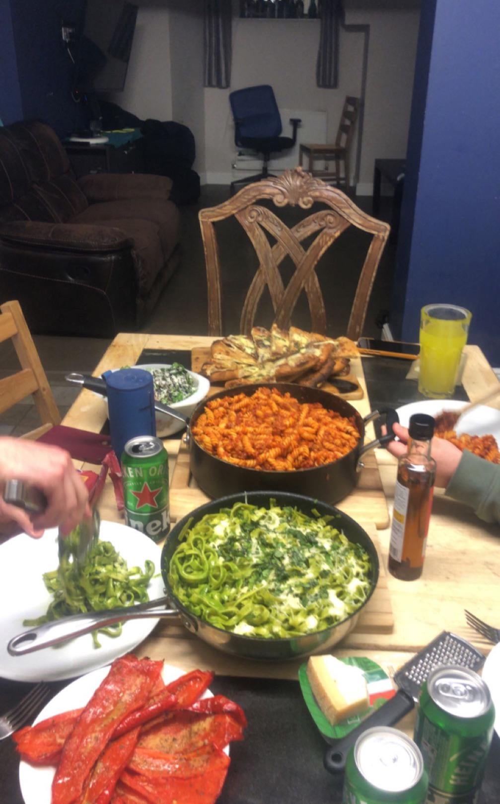 I Cooked some homemade pesto and tagliatelle, oven roasted garlic pointed peppers, spicy chorizo tomato fusilli and some garlic bread from homemade dough by Party-Abrocoma4498 Write A CommentYou must be logged in to post a comment.