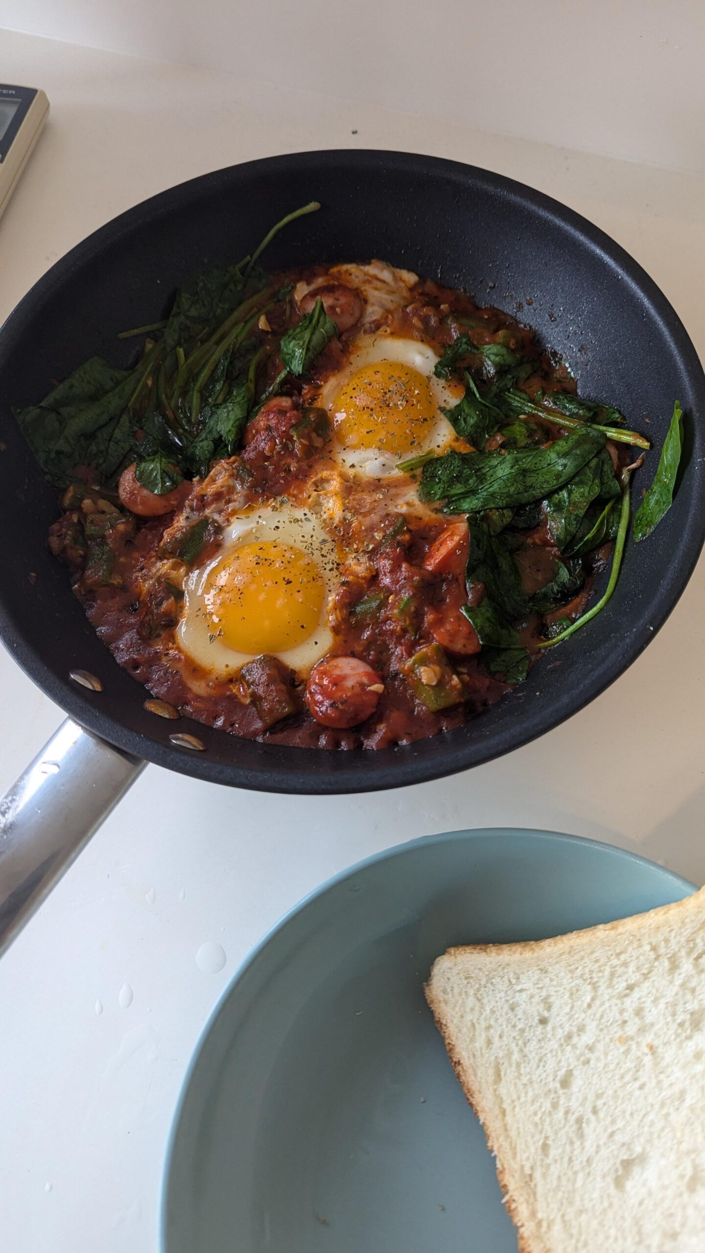 Looks like Afghan style eggs. The basic version is usually just onion and tomato, but I’ve also seen it done with gandana, peppers, beef sausage, leftover kabob, or potatoes.