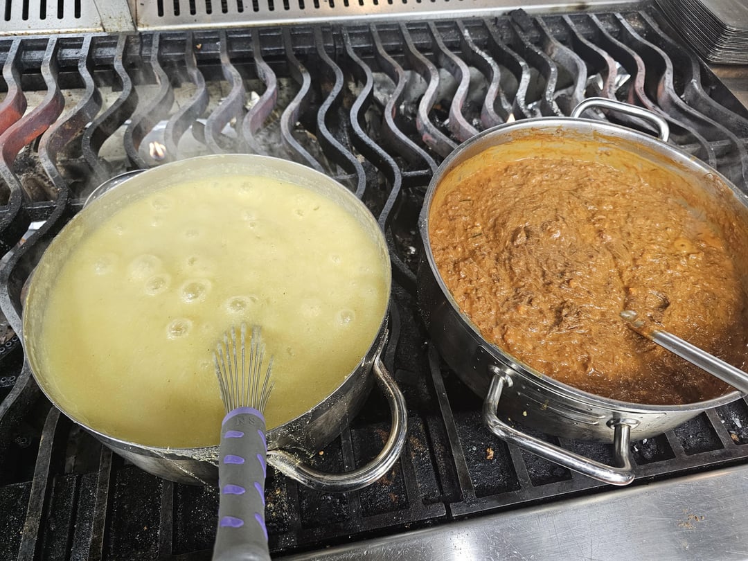 Ragu has mire poix, pumpkin, venison, cream… basic stuff. Polenta just has parm and rosemaryby dasfonzie 13 Comments dasfonzie 11 months ago Oh yeah. A pound of lentils in the ragu too. Make lasagna or something with it later this week vitonga 11 months ago fuuuuuuuuuck me that looks good!haven’t had polenta+ragu in years! my dad used to make it all the time. SuperDeliciousFlavor 11 months ago That’s the type of staff meal that everyone crushes and then 30min later everyone’s downing espresso trying to stay awake before service lol. CheGueyMaje 11 months ago Boah OlDirtyBathtub 11 months ago Deer god , thank you for this venison . Pumpkin god , thank you for this pumpkin . ServerLost 11 months ago My mouth is watering from thousands of miles away. MEGLO_ 11 months ago Chef, please. I would kill for this. Mother_Weakness_268 11 months ago *yumptious* NeighborhoodLimp5701 11 months ago The end pic looks super tasty, the 3rd pick looks like your cooking hair and marrow lol PapaSmurphy 11 months ago Polenta my beloved <3 RaspberryVin 11 months ago Goddamn: you, or whoever made it, absolutely killed it.I might try and make this for dinner tonight, minus the venison as I don’t have access. shackbleep 11 months ago Looks great, but I’d be asleep in ten minutes. Make mine to go, chef. friendly-skelly 11 months ago Forget the horse, my kingdom for a bowl of this.Thanks for giving me the kick in the ass I needed to make breakfast budWrite A CommentYou must be logged in to post a comment.