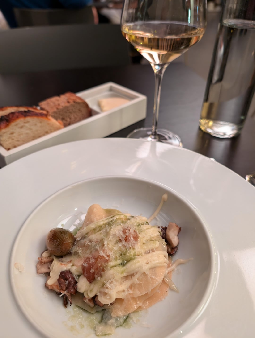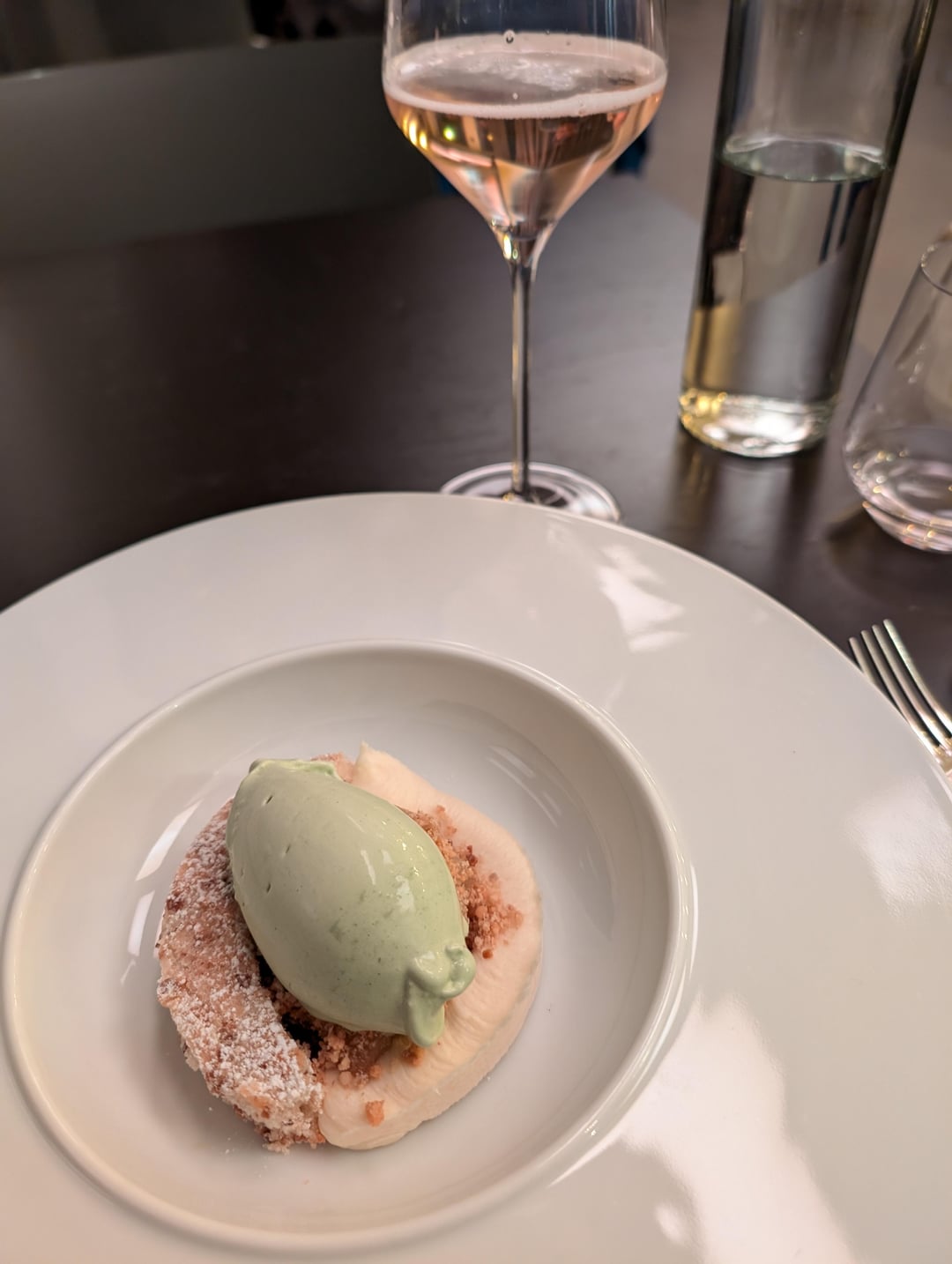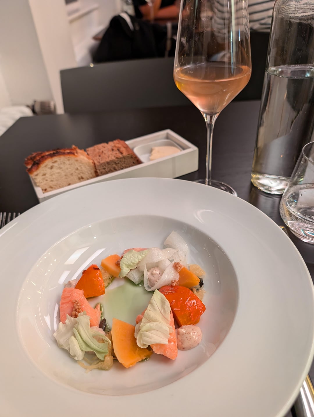 If you go to Michelin-star restaurants for “theater” and to be treated like royalty, this restaurant may not be for you. The service is well-intended, and competent in a friendly way, but, overall, it didn’t seem like there was a service-plan. Everyone just kind of pitched in with everything, except for the person on sommelier-duty, who also served food too. I loved that you could have a 4-course meal here with wine-pairings. The wines chosen were excellent. The presentation well-meaning, but kind of clumsy. Despite there being only 4 courses (and NO amuse bouche or after dessert-course treat), the meal still took 2 and a half hours, not really counting the long wait for the check. The restaurant is obviously very popular with locals, who seem to get a little more love.