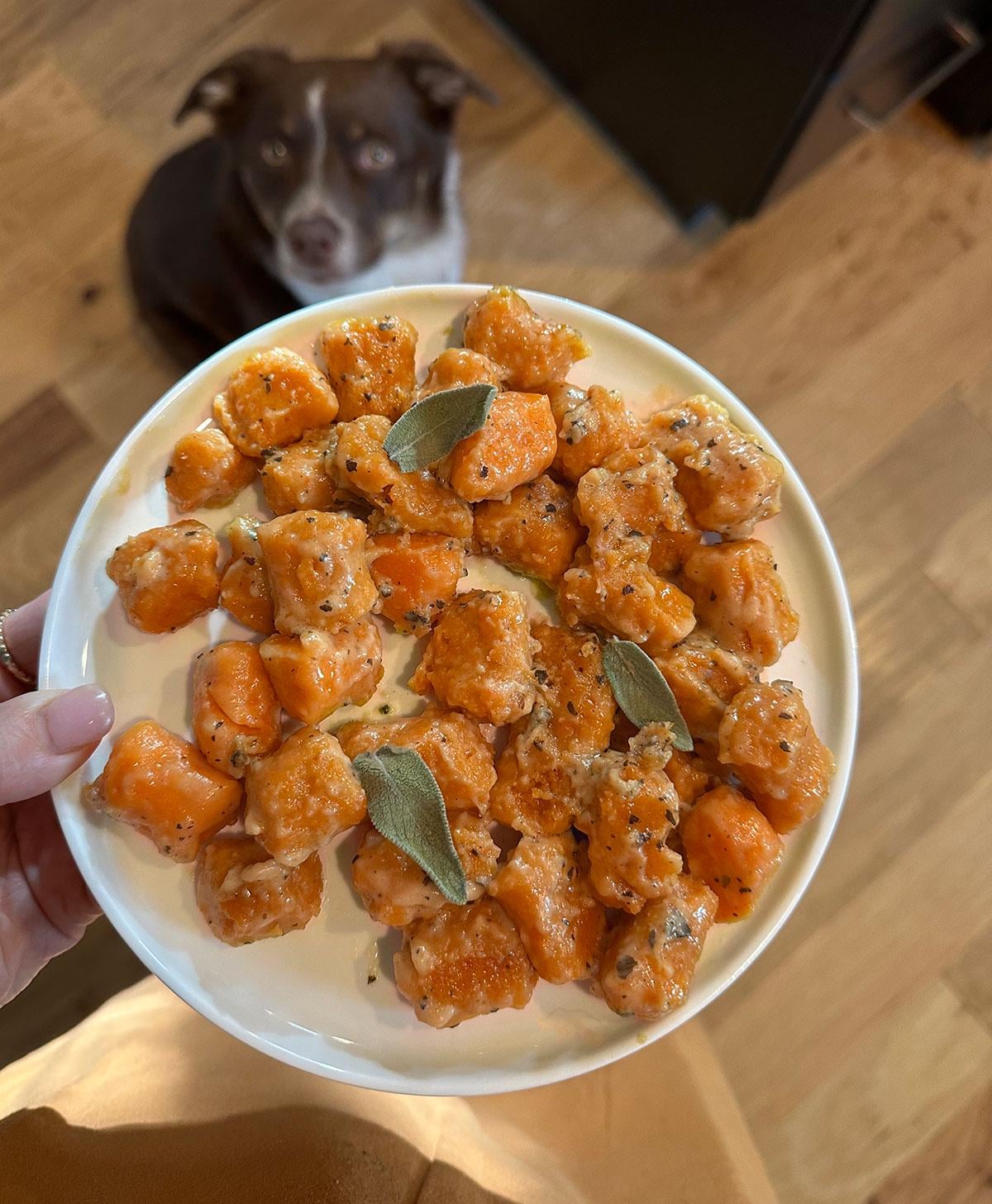 The whole family was excited about this one 😅 Here’s how I made it (here’s the original [sweet potato gnocchi recipe](https://www.liveeatlearn.com/sweet-potato-pumpkin-gnocchi/)):
