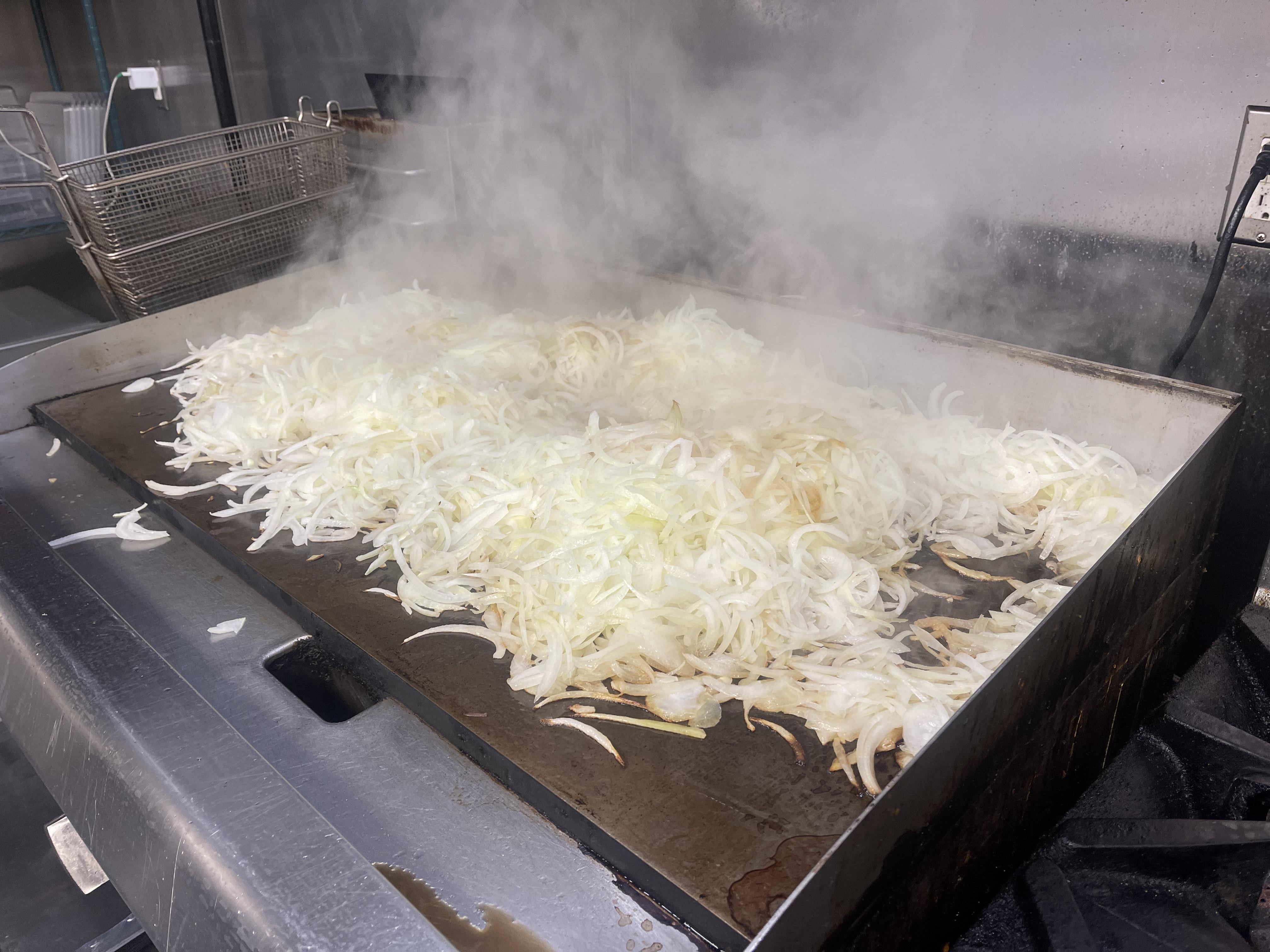 Onions cookin’ up for a special we’re running at my restaurant. A steakhouse sub— sliced sirloin, mushroom gravy, and of course, caramelized onions 🤤