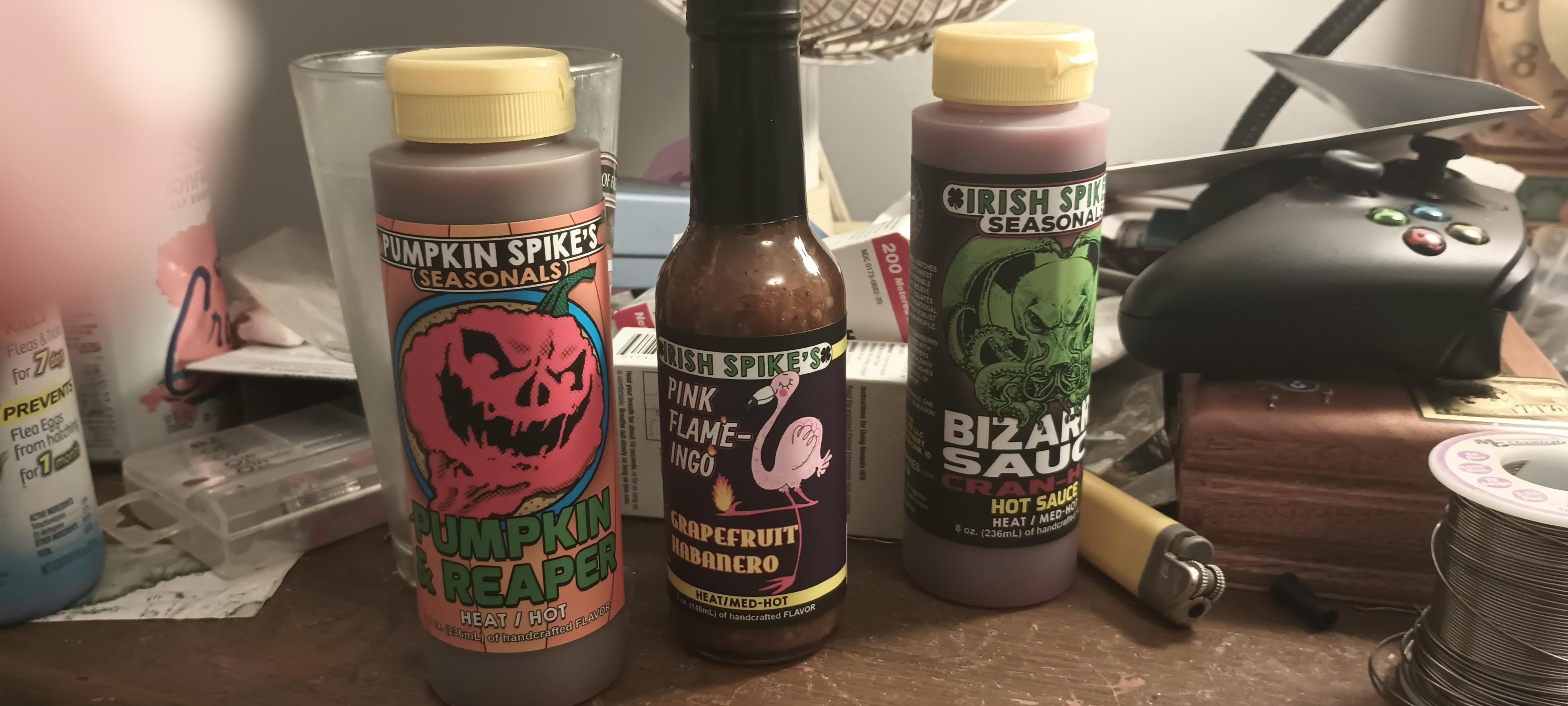 While working on a original xbox that wasn't powering correctly these showed up each have fantastic flavor especially grapefruit habanero the cranberry habanero is good on ice cream and ham and the pumpkin one tastes like pumpkin pie
