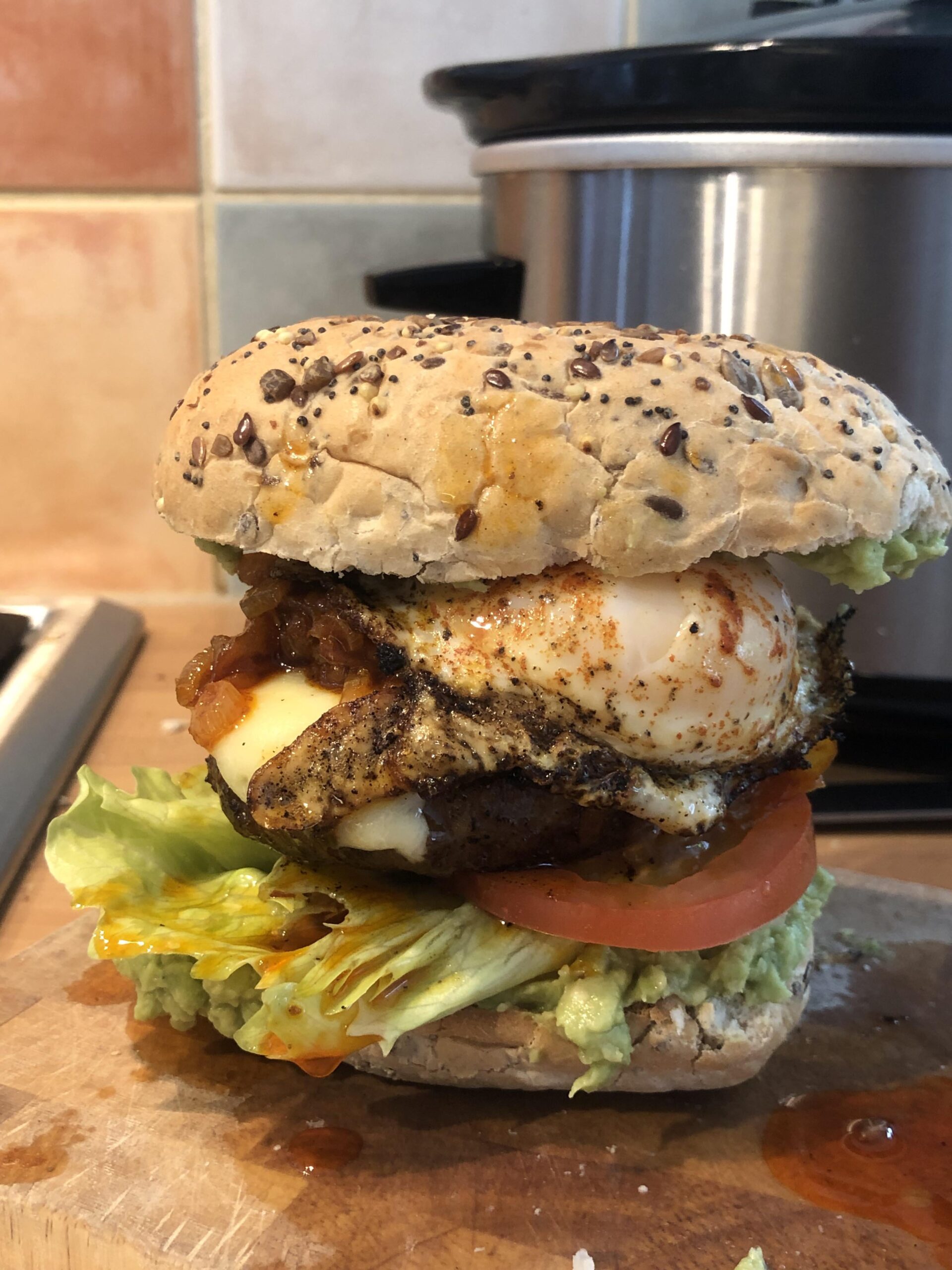 Homemade Burger with guacamole, beef tomato, caramelised onions, dirty fried egg and iceberg lettuceby Party-Abrocoma4498 Write A CommentYou must be logged in to post a comment.