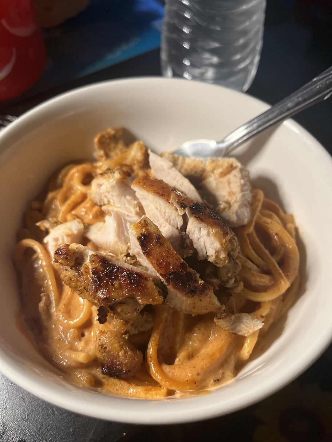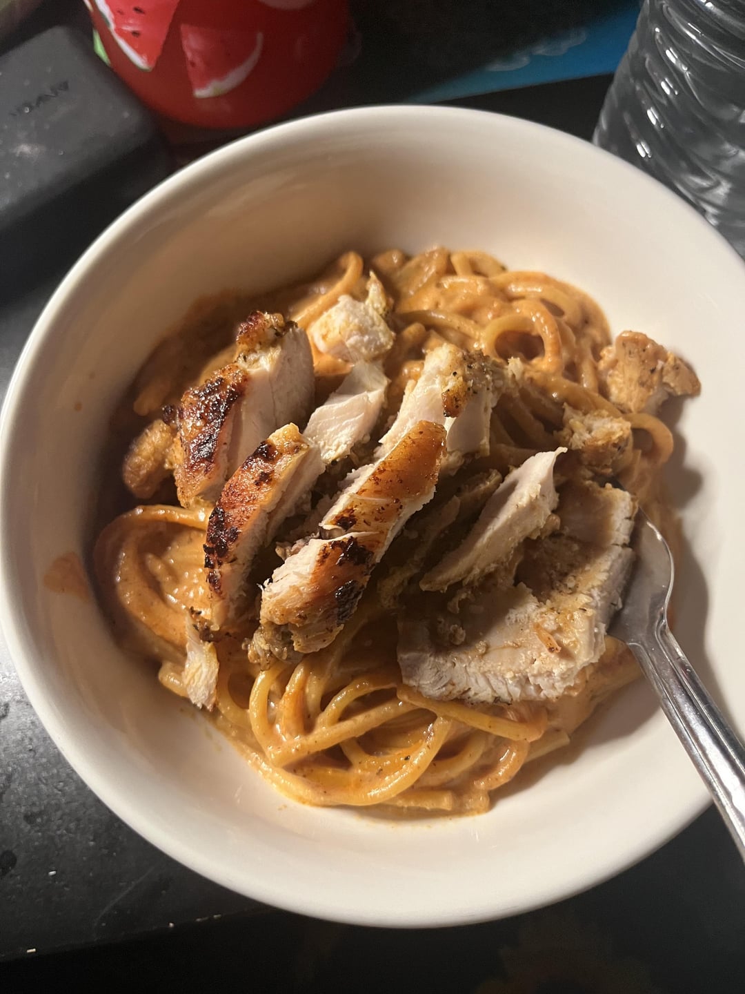 I used all the ingredients left over in the cabinet and fridge for this pasta dish. Creamy garlic tomato sauce topped with seared chicken thighs 🫶🏾by Chefboyardrea 2 Comments Junglesweat69 12 months ago Nice RebaKitt3n 12 months ago Wow looks delicious!Write A CommentYou must be logged in to post a comment.