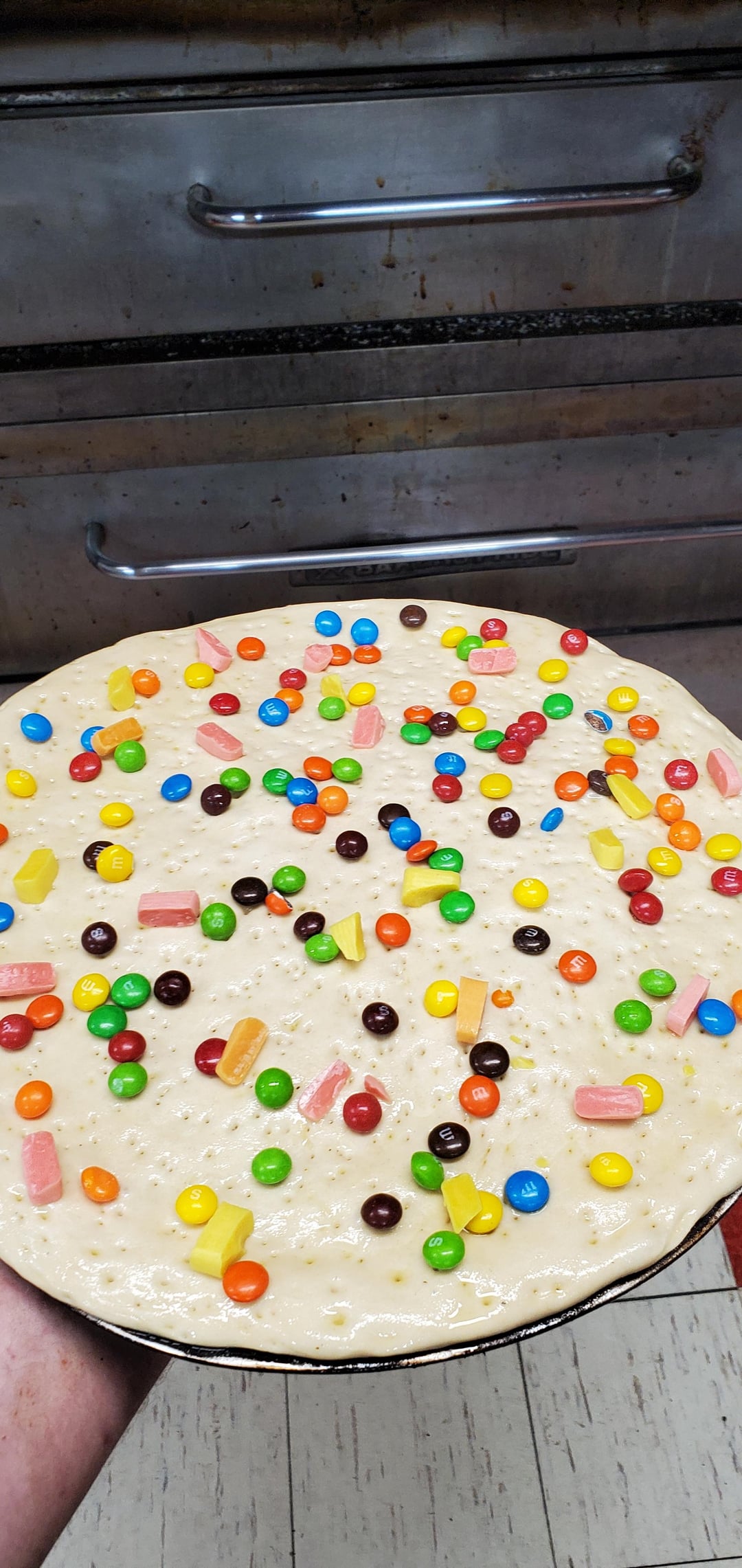 It was apparently kinda dry and could have used a dipping sauce, according to the young and brave coworkers who ate some of my Halloween joke pizza (or, technically, candy breadsticks). I broke down and couldn't stop laughing around the moment I was mixing M&Ms and skittles in a bowl and had crossed a sort of moral threshold.