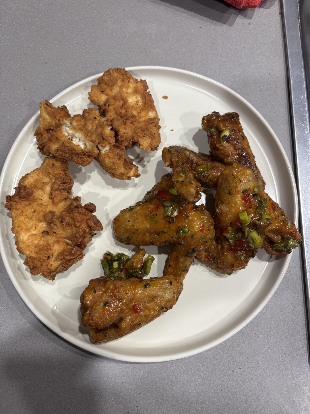 Please help estimate this! 3 pieces of fried chicken and 4 wings with like sticky sweet chilli sauceby SwimmingMiserable623 1 Comment Snak3yz 1 year ago If it’s like KFC chicken, probs about 650 for the fried chicken pieces. 200 each for the wings maybe?Write A CommentYou must be logged in to post a comment.