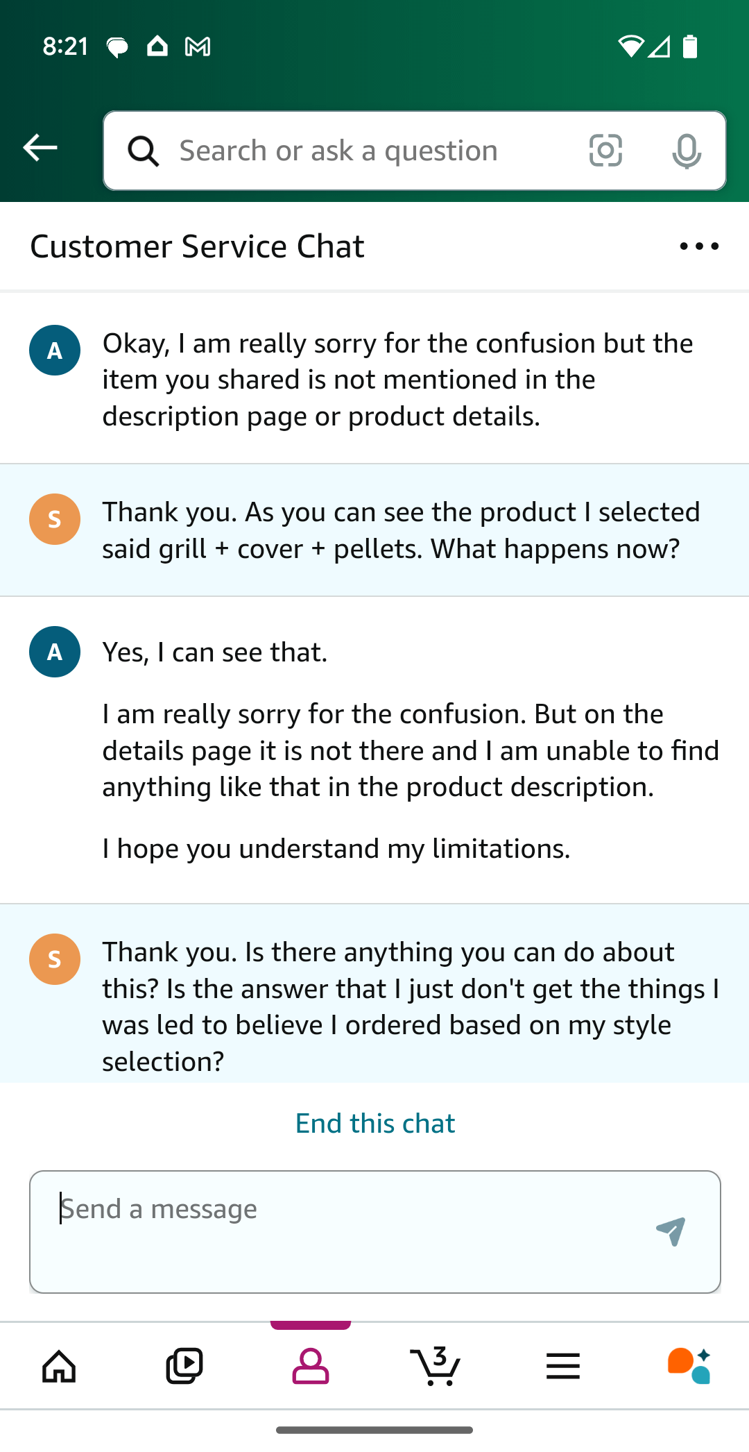 Fuck a bot, call a person. Email somebody. You get that fucking cover. Make them give you an extra bag of pellets for the hassle
