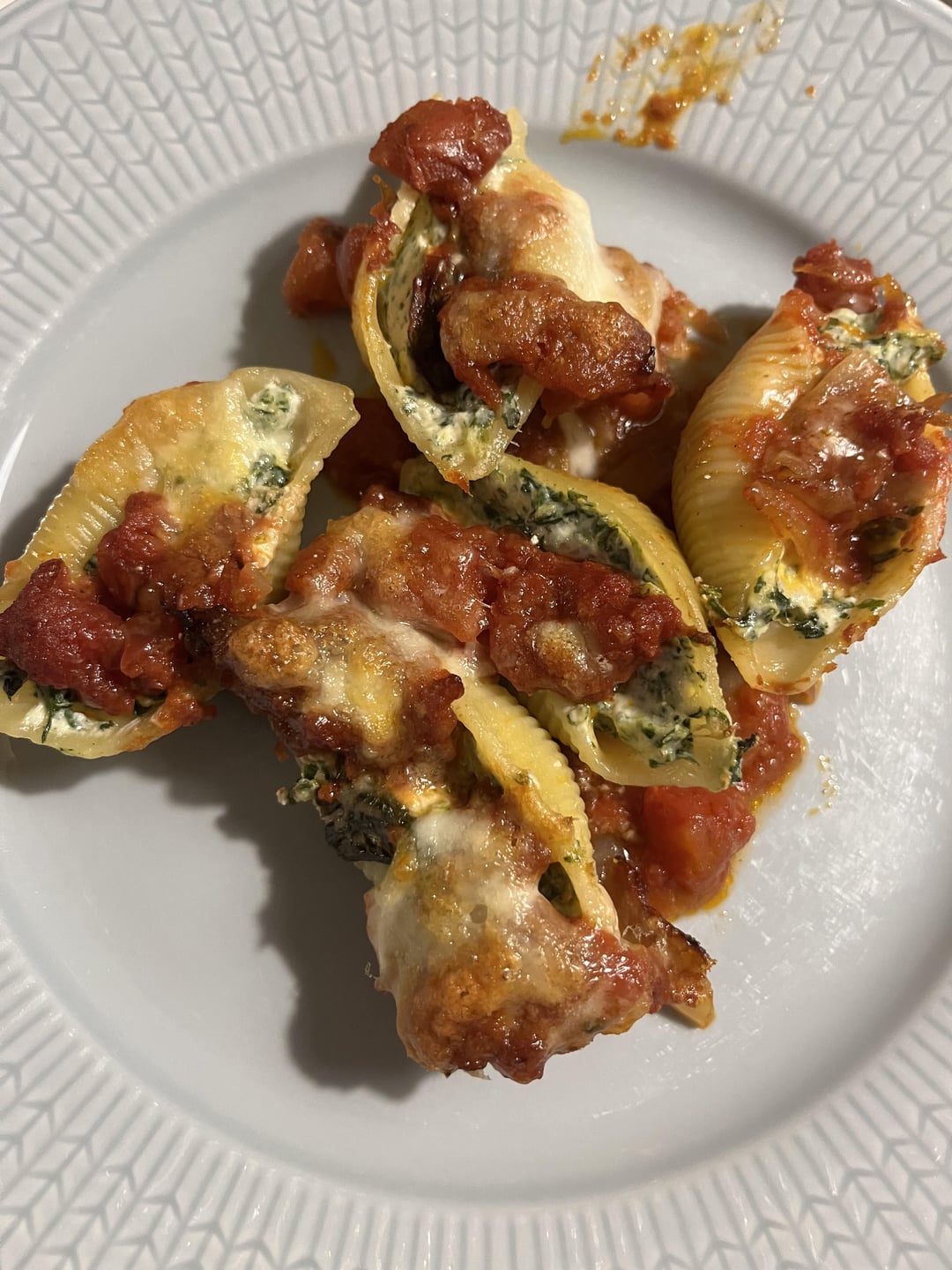 Conchiglione filled with ricotta, spinach, Pecorino, Parmigiano, nutmeg etc with long cooked tomato saucex more Parmigiano and mozzarella bufala π€πΌπby Legitimate-East7839 1 Comment HoneyBubbleLoops 12 months ago I made these two night ago!! Yumm!!Write A CommentYou must be logged in to post a comment.